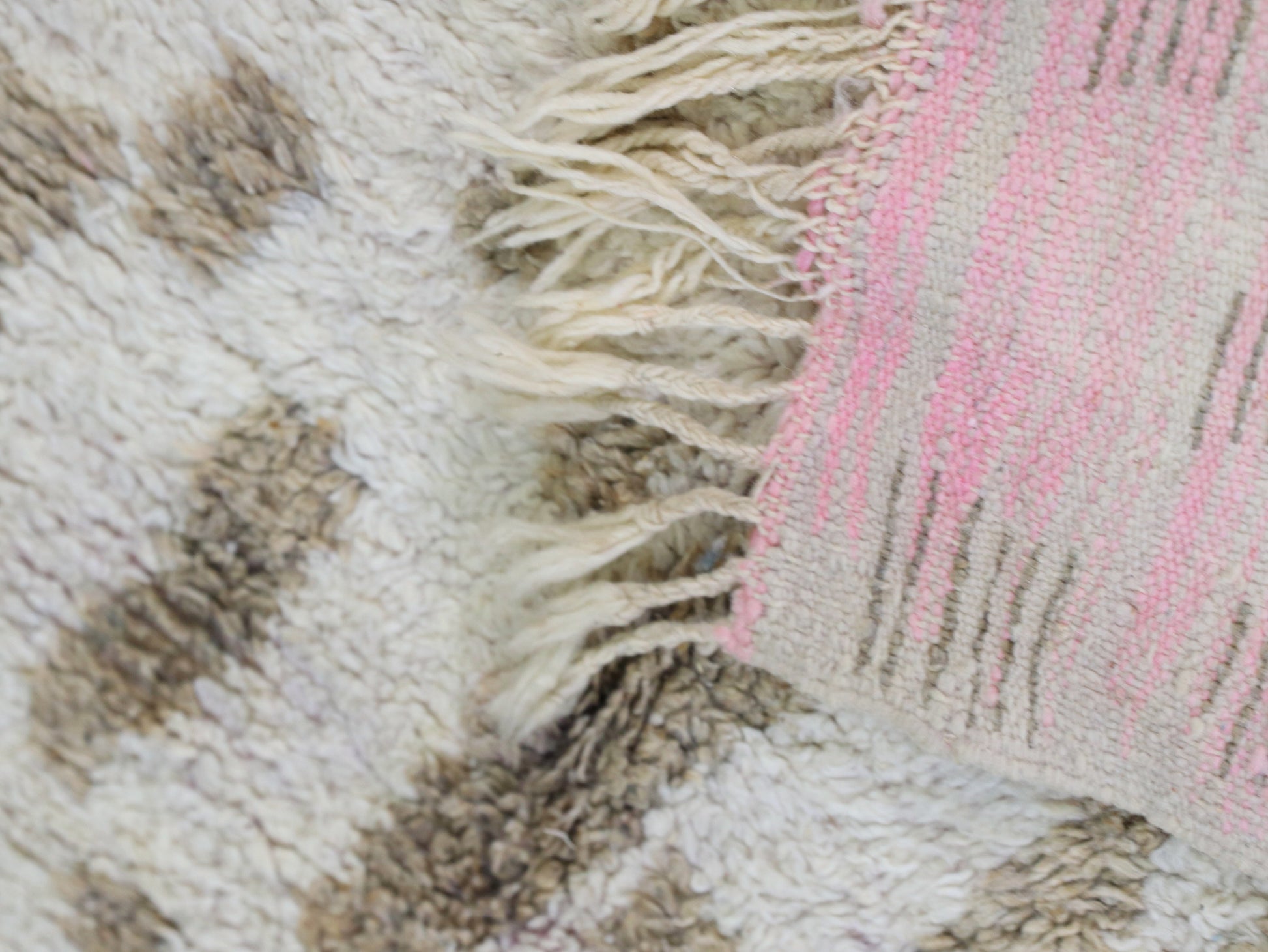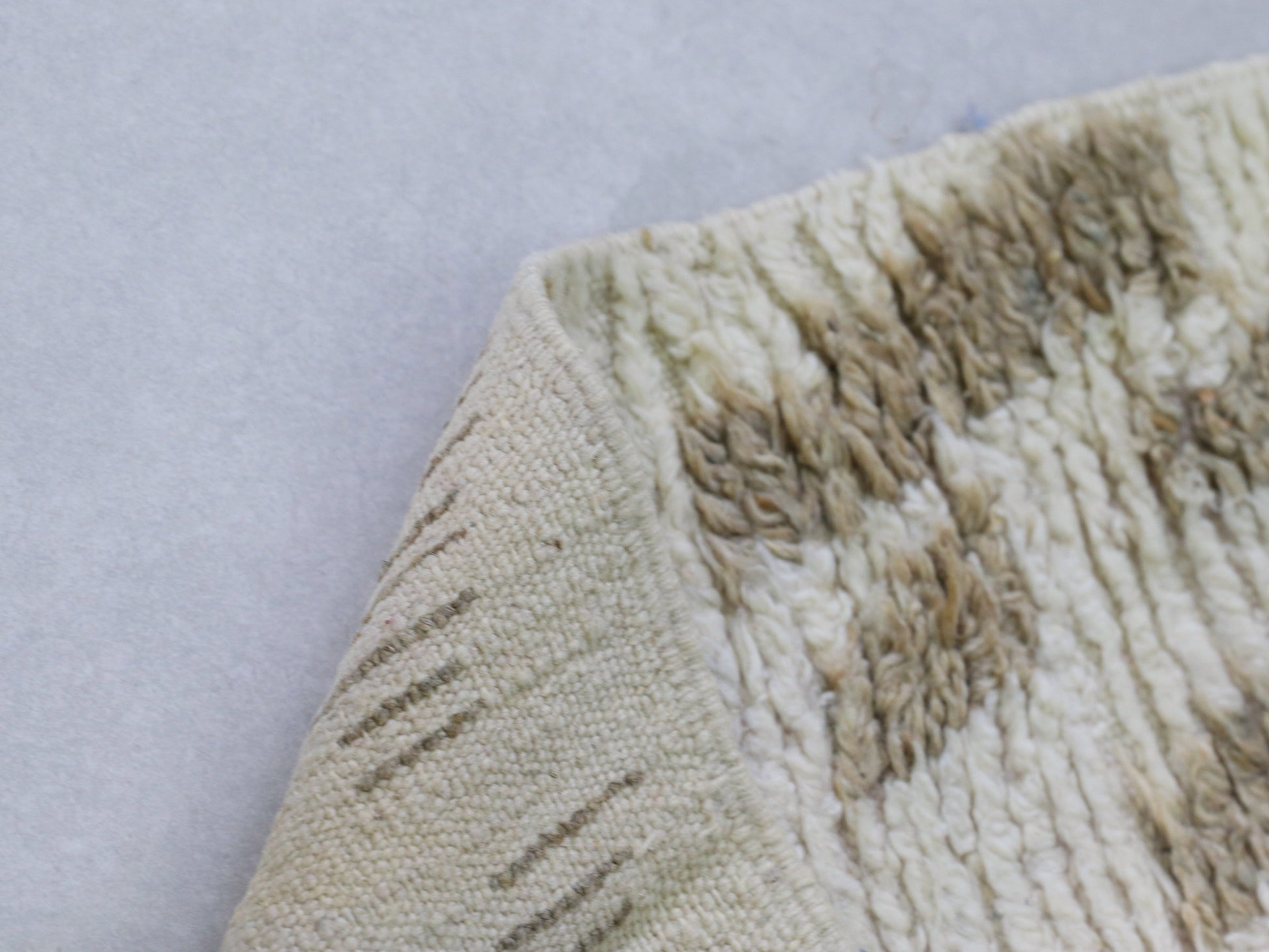 This handwoven Moroccan rug features a calm, earthy palette of cream and soft beige, arranged in a modern abstract pattern. Made from 100% natural wool, it offers a plush feel and timeless Berber craftsmanship. Ideal for minimalist, Japandi, or wabi-sabi interiors, this rug adds quiet texture, warmth, and artisan authenticity to your home.