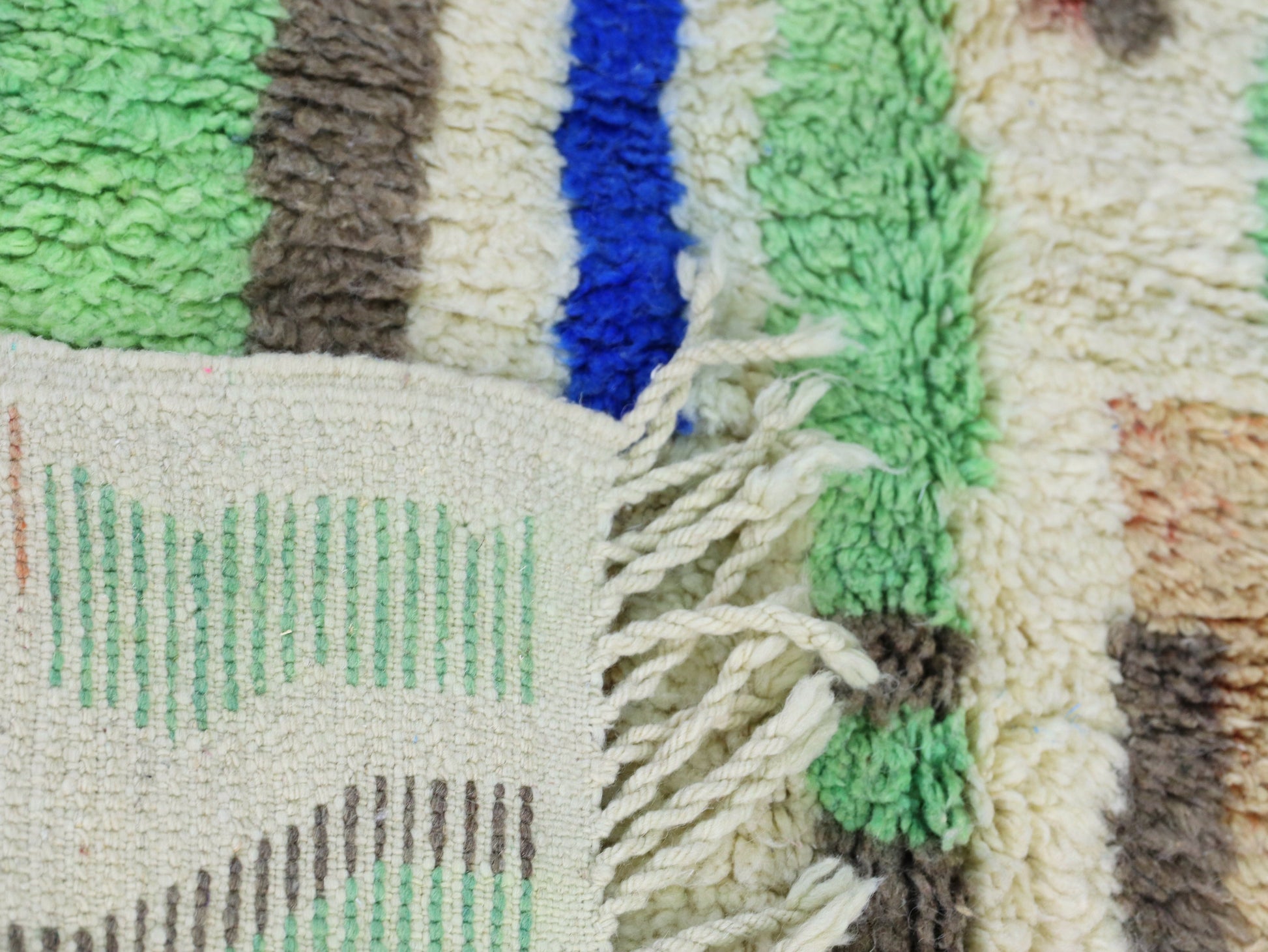 This handmade Moroccan rug bursts with personality through its expressive abstract design and vibrant mix of blues, pinks, greens, and browns. Handwoven by Berber artisans using natural wool, it features an organic, freeform pattern that brings energy and artistic flair to any space. A true statement piece for bohemian, modern eclectic, or creative interiors.