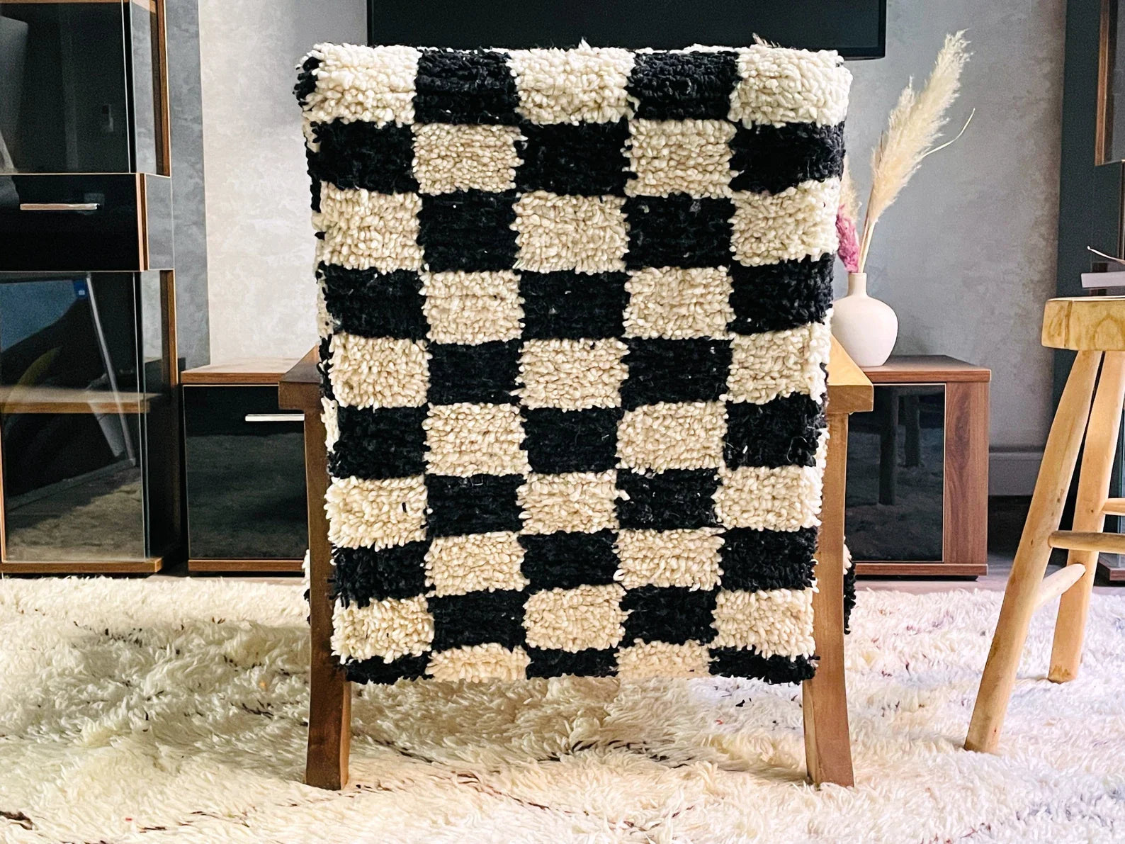This custom Moroccan chair brings a modern twist to traditional Moroccan craftsmanship. Its striking checkered pattern, paired with the warm, curved wooden frame, creates an inviting and stylish accent for any room. Designed for both comfort and aesthetic appeal, this chair is perfect for adding a unique touch of Moroccan flair to your living space.