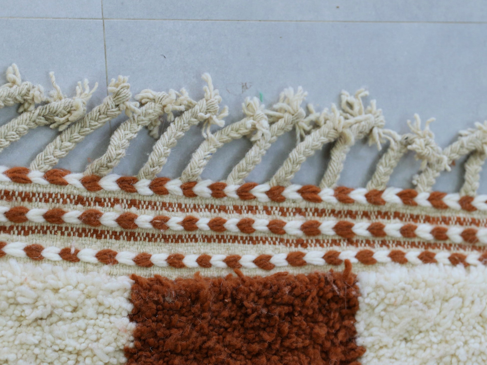 This handmade Moroccan wool rug features a bold and timeless checkered design in warm brown and cream tones. Its striking chessboard pattern blends traditional craftsmanship with a modern boho aesthetic, making it the perfect accent piece for your living room, bedroom, or office. Crafted from 100% natural wool, this rug offers exceptional softness, durability, and insulation, ensuring both comfort and style.