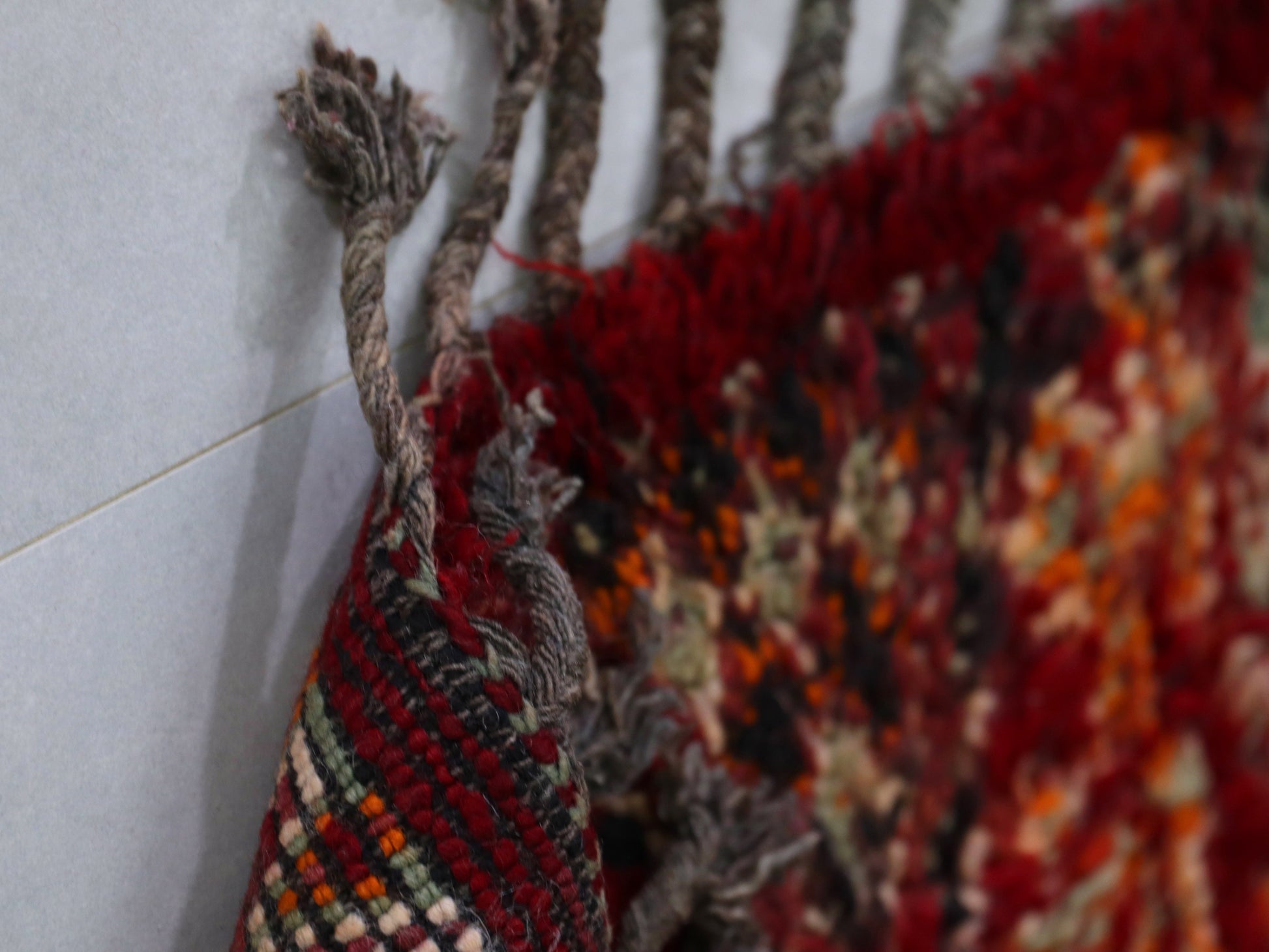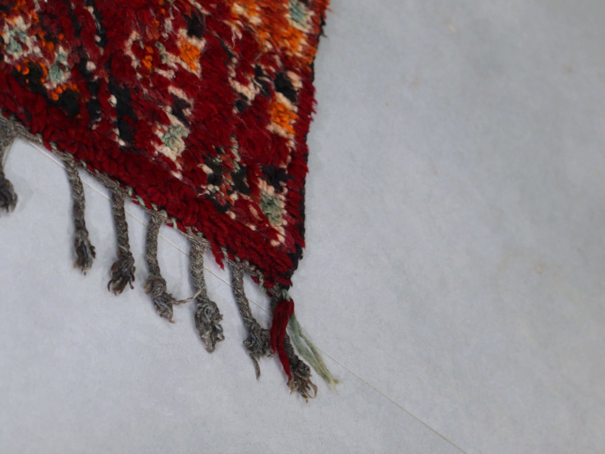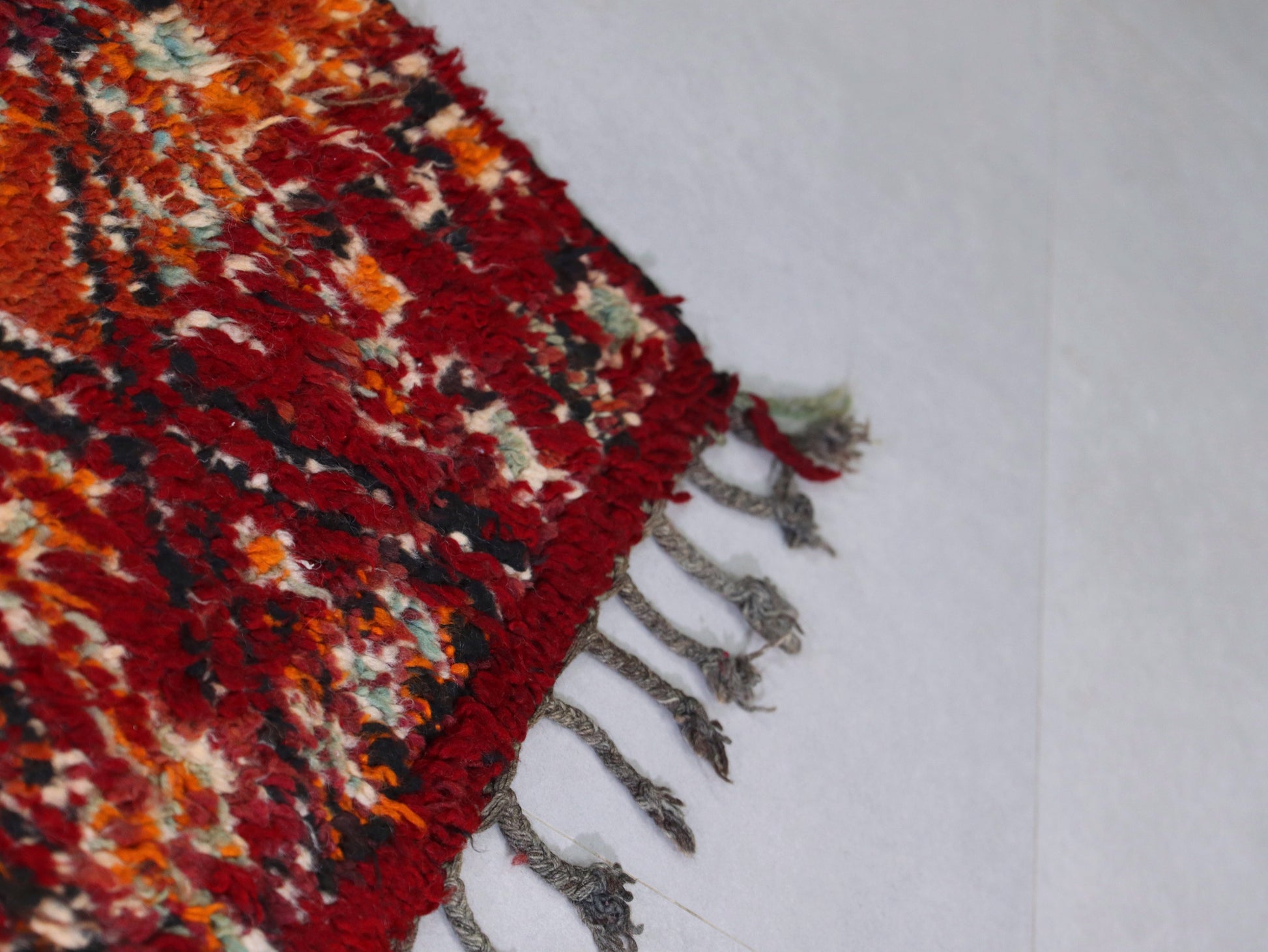 This vintage Moroccan rug features a stunning tribal design handwoven by Berber artisans using soft, high-quality wool. The intricate diamond pattern, paired with vibrant hues of red, orange, and earthy tones, adds a touch of boho chic elegance to any space. Perfect for living rooms, bedrooms, or even as a statement piece in your entryway, this Moroccan handmade rug will effortlessly elevate your home décor. Its timeless beauty and durable wool texture ensure it remains a cherished piece for years to come.