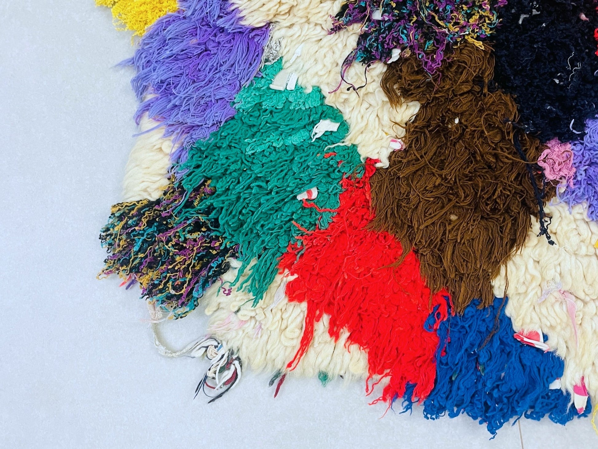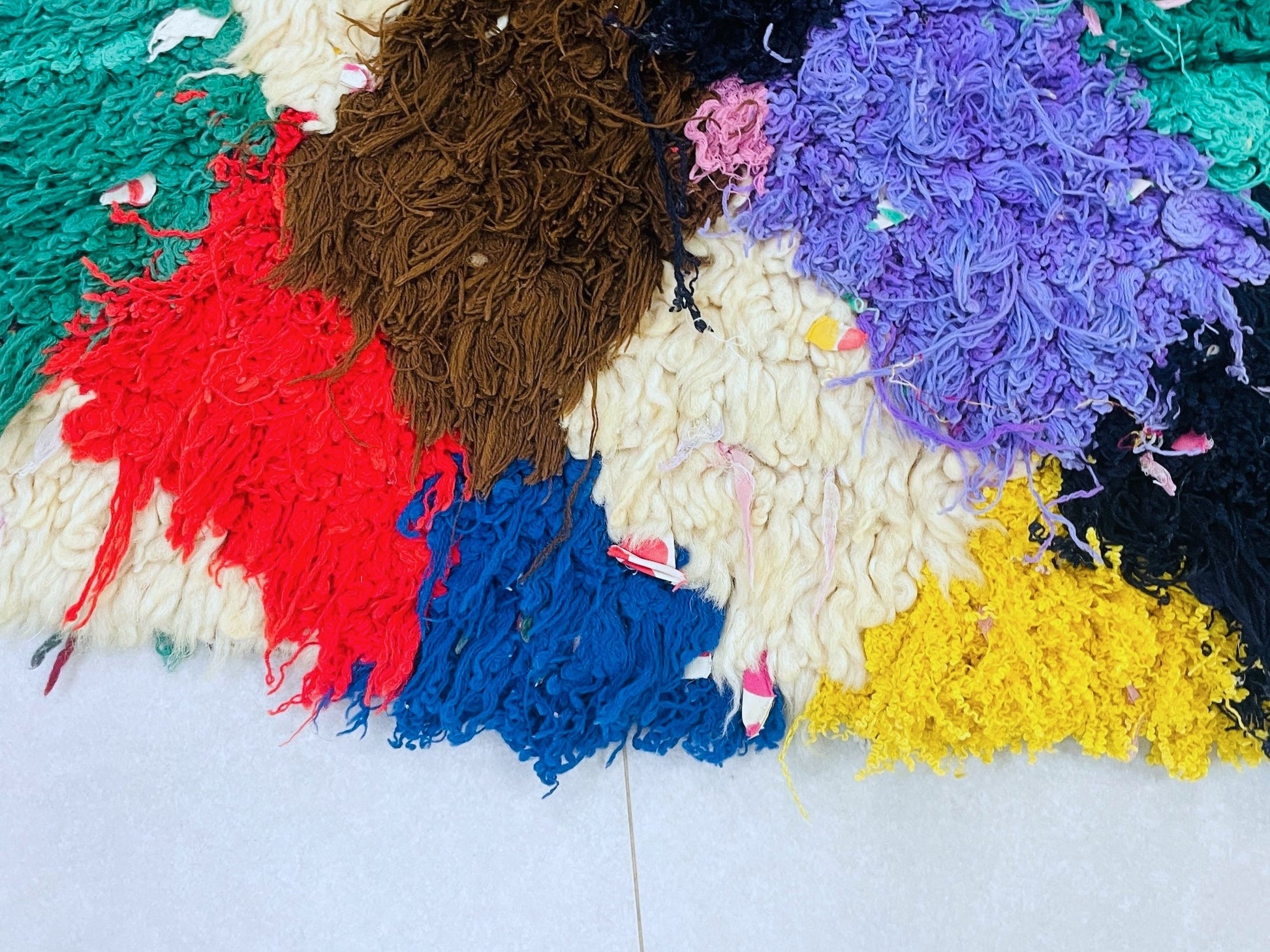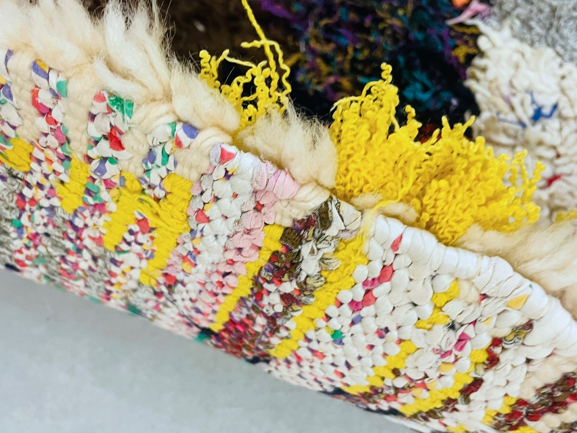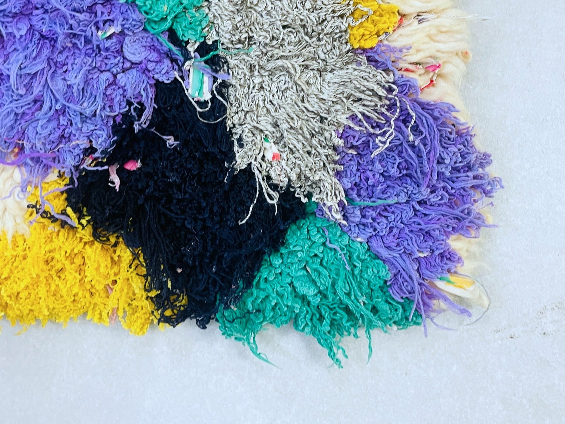Infuse your space with bold colors and Moroccan charm with this vibrant Boucherouite runner. Handmade by Berber artisans, this one-of-a-kind rug showcases an eclectic patchwork of colorful diamond patterns, adding a lively and artistic touch to any interior. Crafted from recycled textiles, this rug is both eco-friendly and a stunning expression of Moroccan craftsmanship.