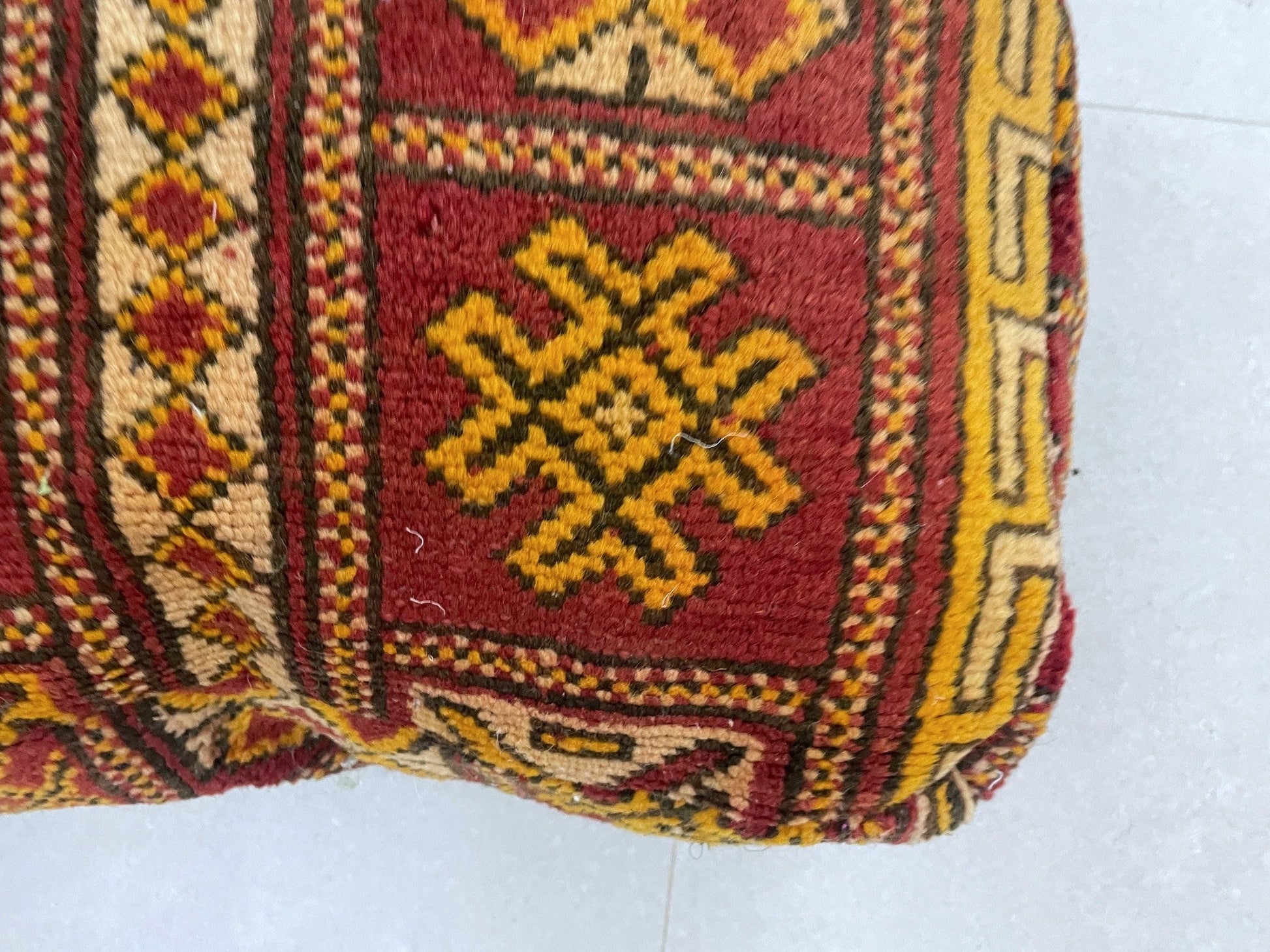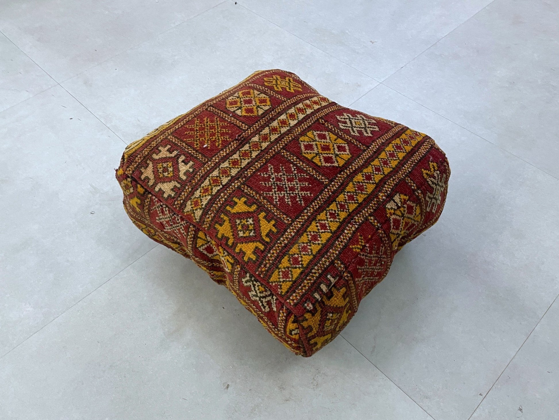 This Moroccan pouf is a beautiful fusion of tradition and modern style, handwoven to bring a cozy yet sophisticated vibe to any room. Perfect as a seat, a footrest, or even a decorative accent, it effortlessly enhances your decor with its intricate details and artisanal craftsmanship. This pouf isn’t just functional; it’s a statement piece that tells a story of Moroccan artistry, transforming your space with charm and warmth.