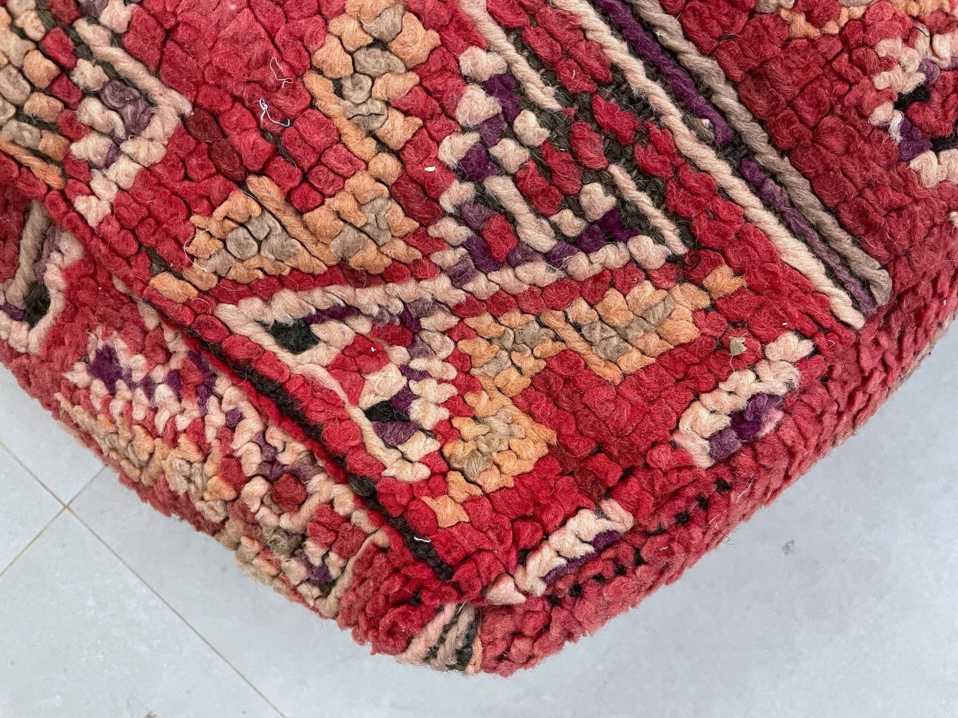 This Moroccan pouf is a beautiful fusion of tradition and modern style, handwoven to bring a cozy yet sophisticated vibe to any room. Perfect as a seat, a footrest, or even a decorative accent, it effortlessly enhances your decor with its intricate details and artisanal craftsmanship. This pouf isn’t just functional; it’s a statement piece that tells a story of Moroccan artistry, transforming your space with charm and warmth.