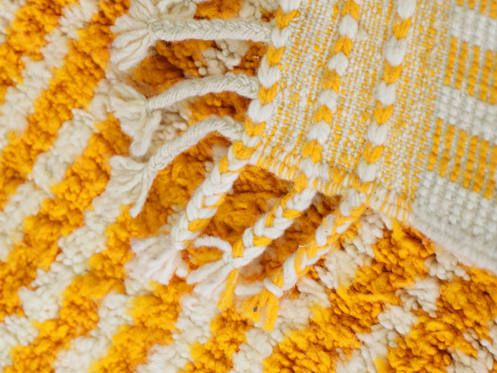 Discover the beauty of tradition with this handwoven Moroccan Beni Ourain rug. Crafted from 100% natural wool, this Berber tribal rug features a minimalist design with bold black geometric lines on a soft gray background, adding elegance to any space. Its luxuriously soft pile offers warmth and comfort, making it perfect for living rooms, bedrooms, or offices. This vintage-style Moroccan wool rug seamlessly blends with bohemian, Scandinavian, or modern interiors. Bring authentic craftsmanship into your home with this timeless Beni Ourain area rug.