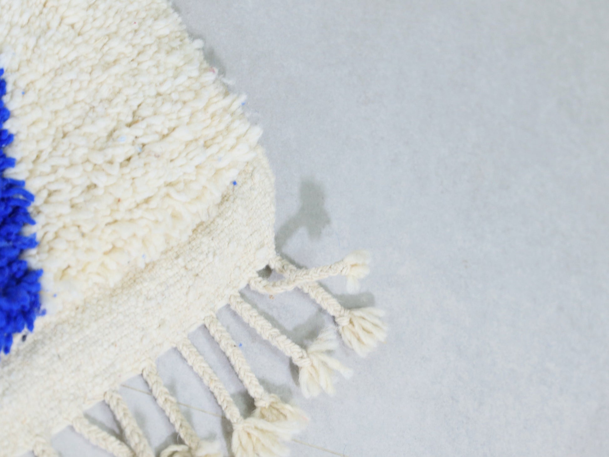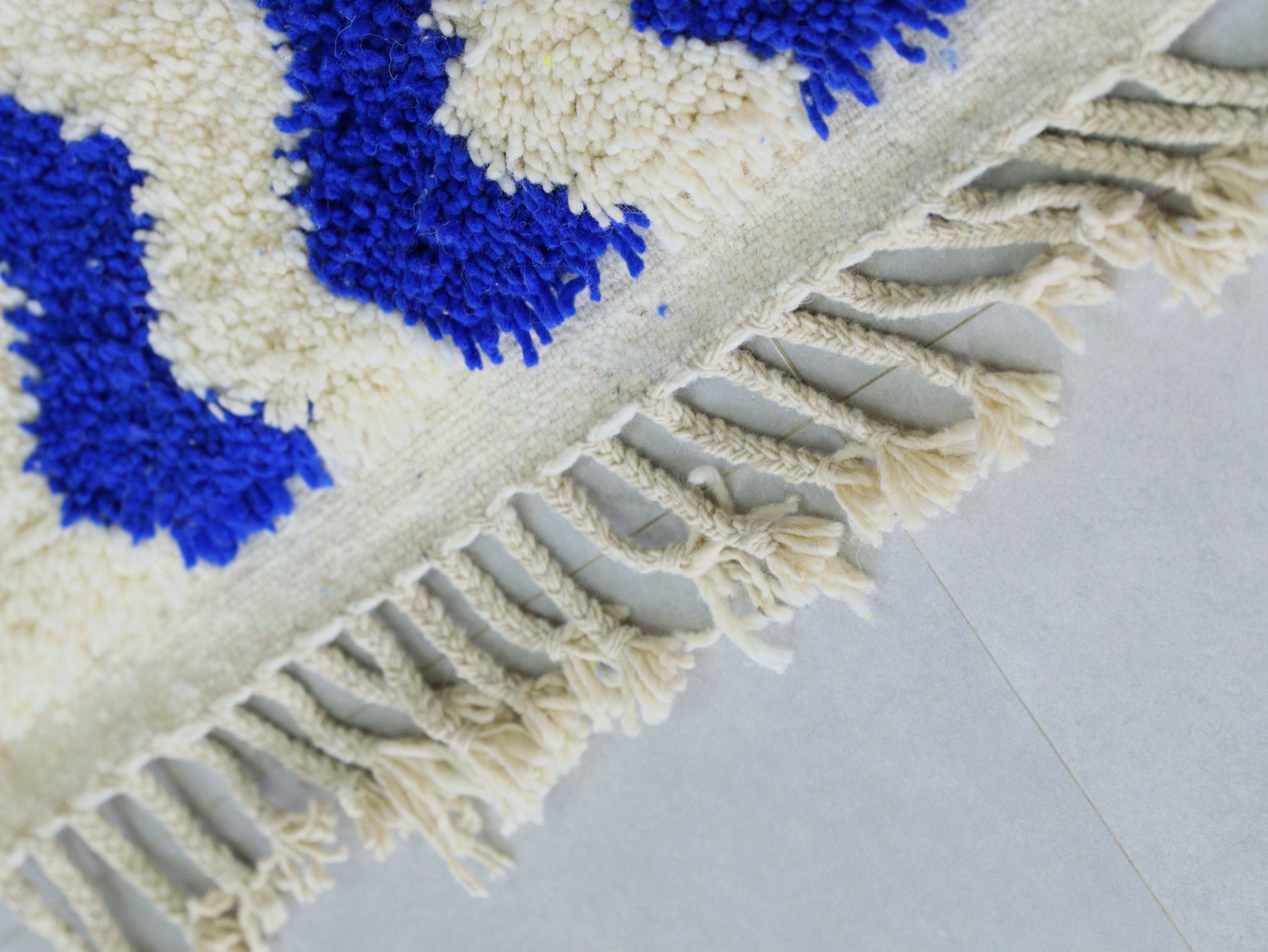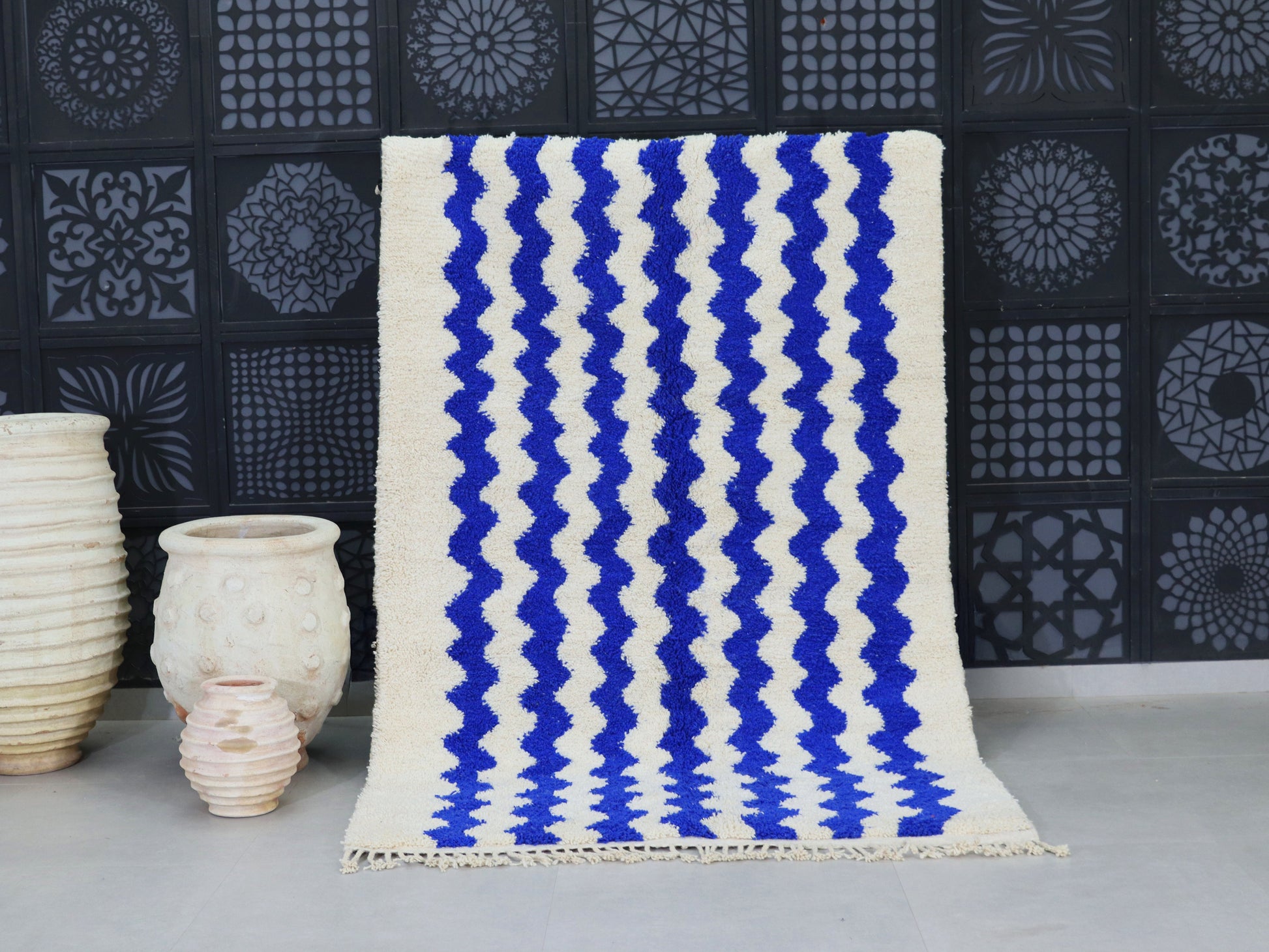 Bring a fresh, modern vibe to your space with this handwoven Moroccan wool rug 💙✨. Featuring a bold blue and white wavy design, this unique piece is a perfect blend of tradition and contemporary style. Crafted from soft, plush wool, it adds texture and movement to any room, making it a standout decor element. 🏡🌿