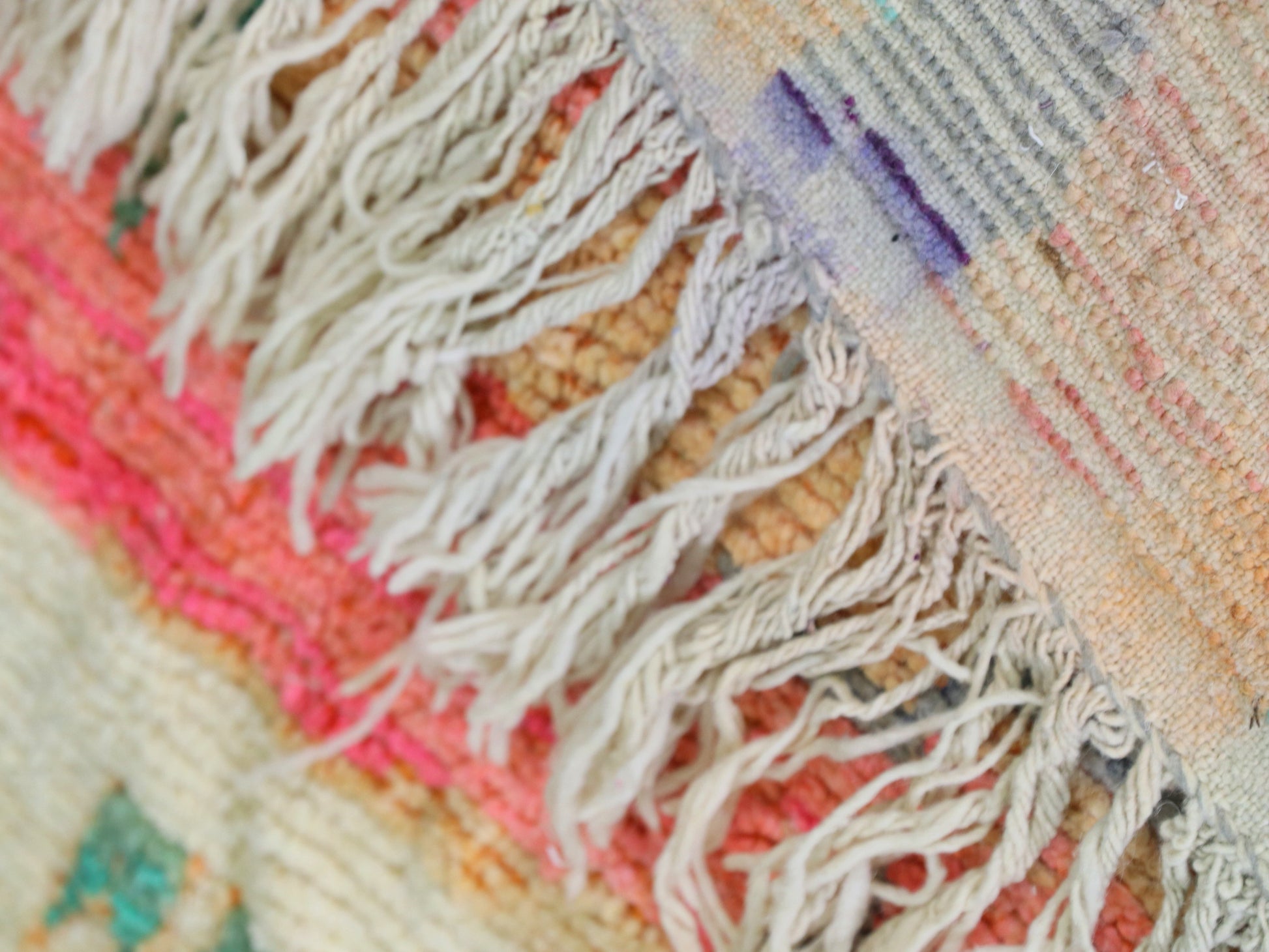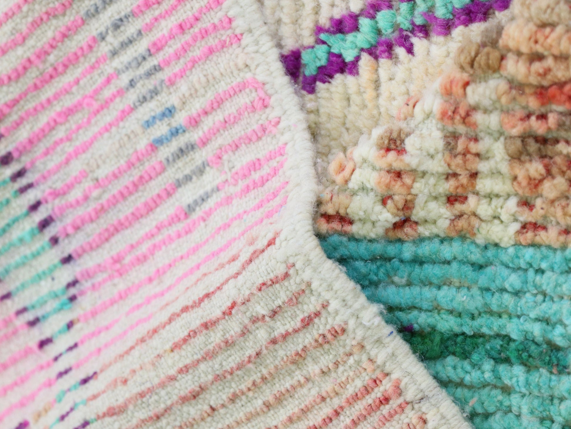 Brighten your home with this stunning Moroccan wool rug, showcasing a lively pink and green abstract design. This handwoven masterpiece is crafted by skilled artisans, combining traditional Moroccan patterns with a modern boho twist. Its vibrant color palette and intricate details make it an eye-catching addition to any living room, bedroom, or artistic space.