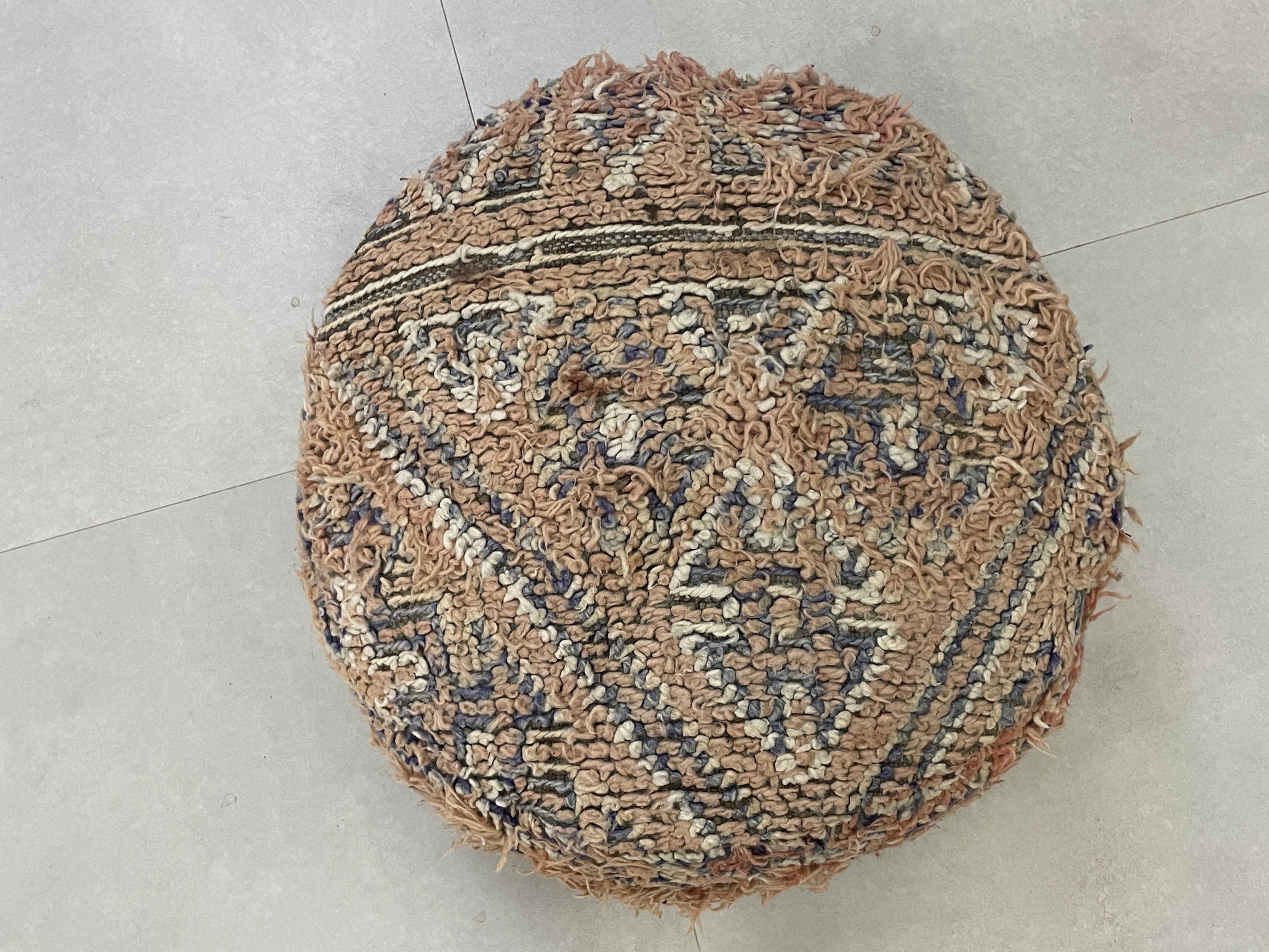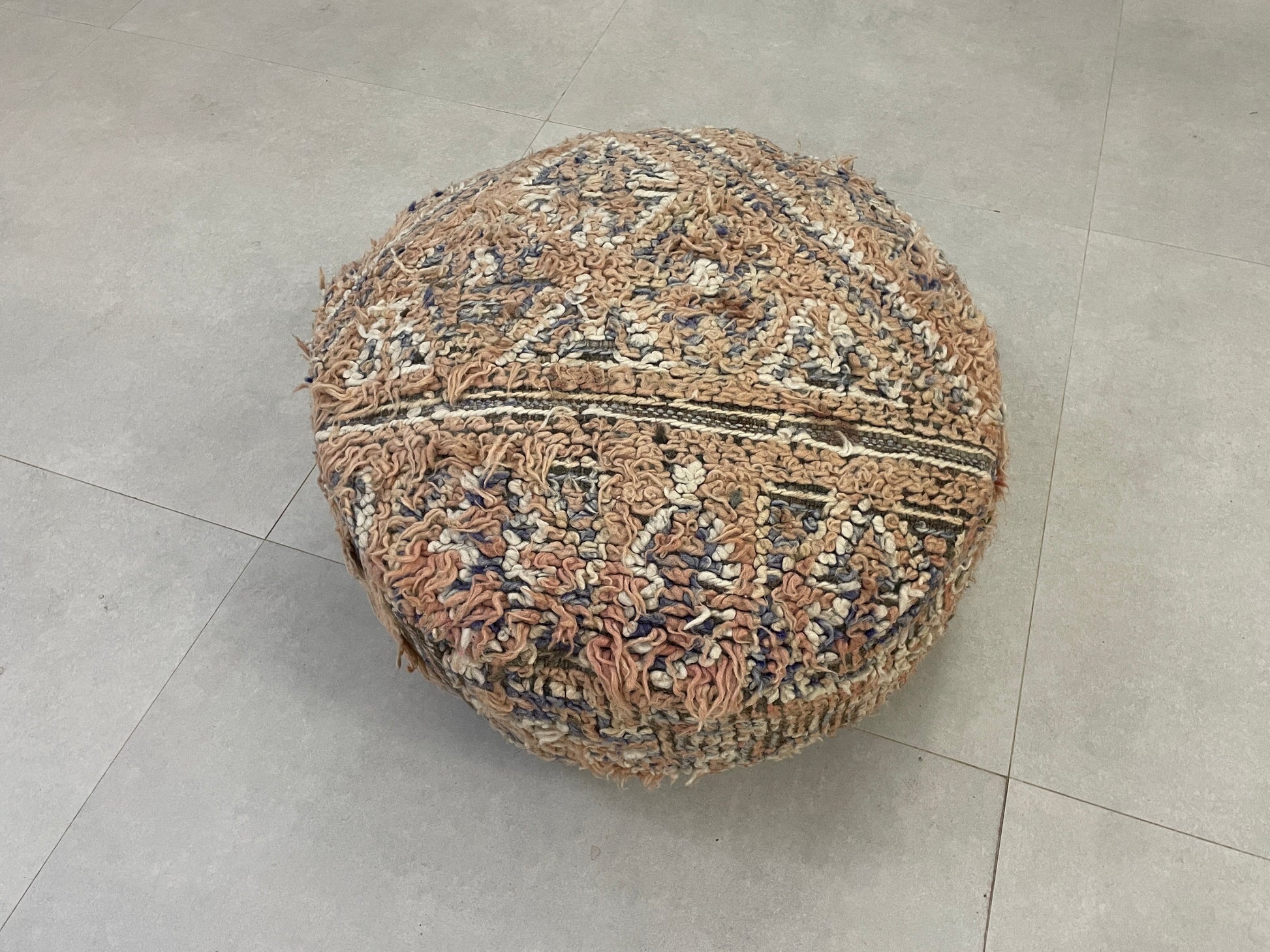 This round kilim pouf combines authentic Moroccan craftsmanship with functionality, serving as a perfect footrest, extra seating, or a decorative accent. Its timeless design and unique texture bring charm and character to any space, making it a versatile addition to your home. â¨