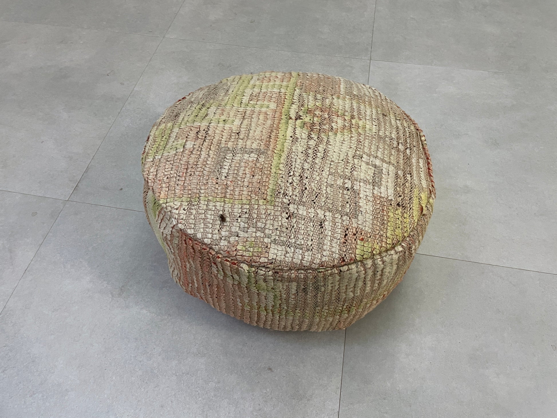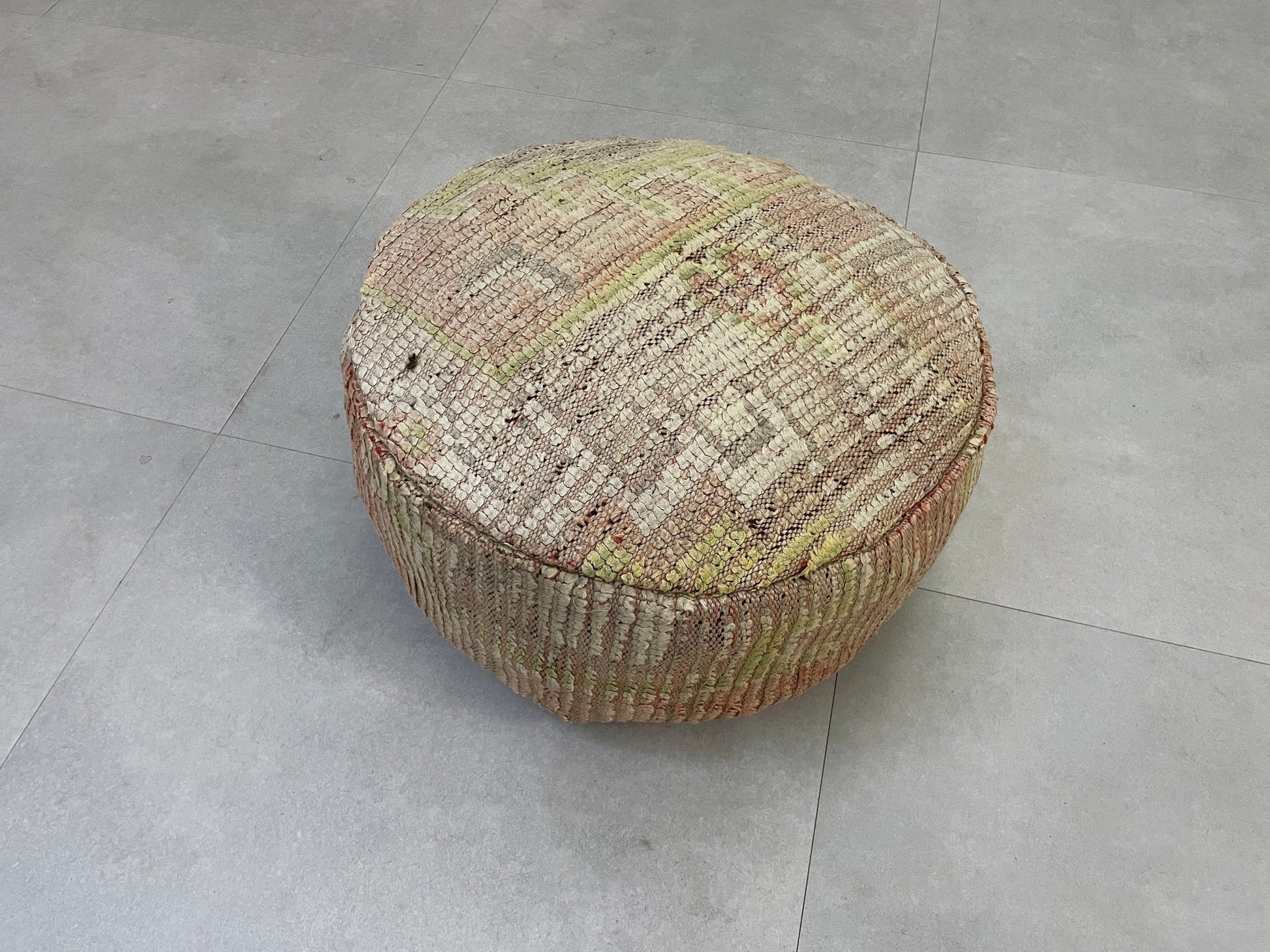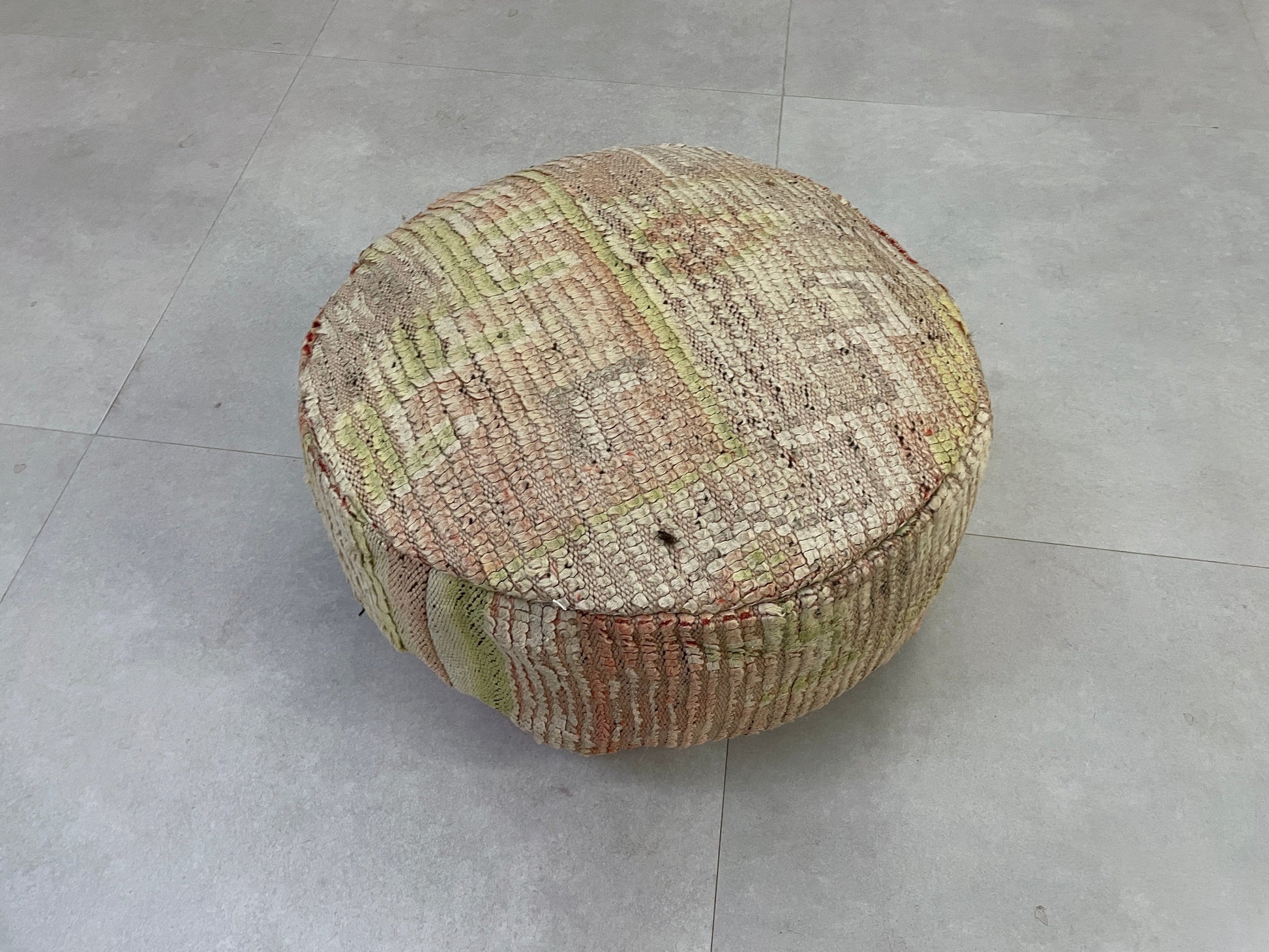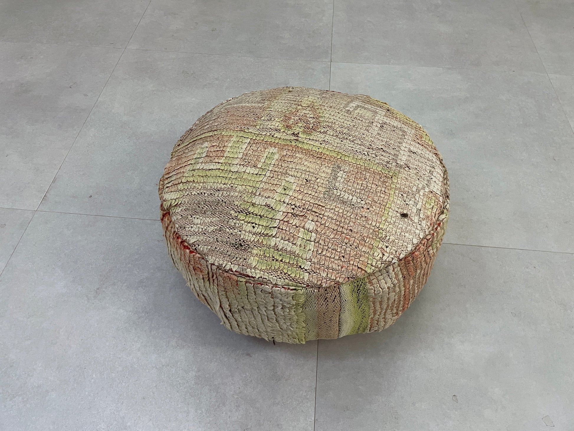 This round kilim pouf combines authentic Moroccan craftsmanship with functionality, serving as a perfect footrest, extra seating, or a decorative accent. Its timeless design and unique texture bring charm and character to any space, making it a versatile addition to your home. â¨
