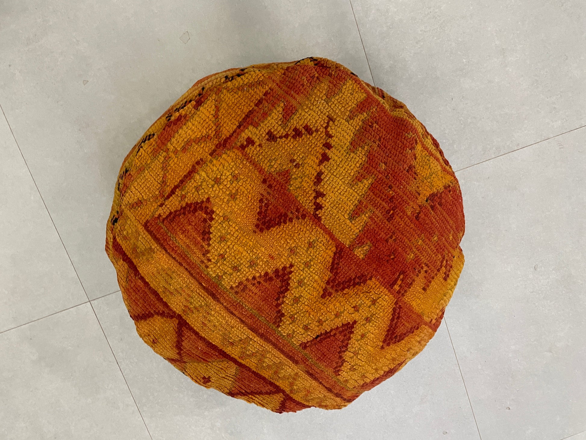 This round kilim pouf combines authentic Moroccan craftsmanship with functionality, serving as a perfect footrest, extra seating, or a decorative accent. Its timeless design and unique texture bring charm and character to any space, making it a versatile addition to your home. â¨