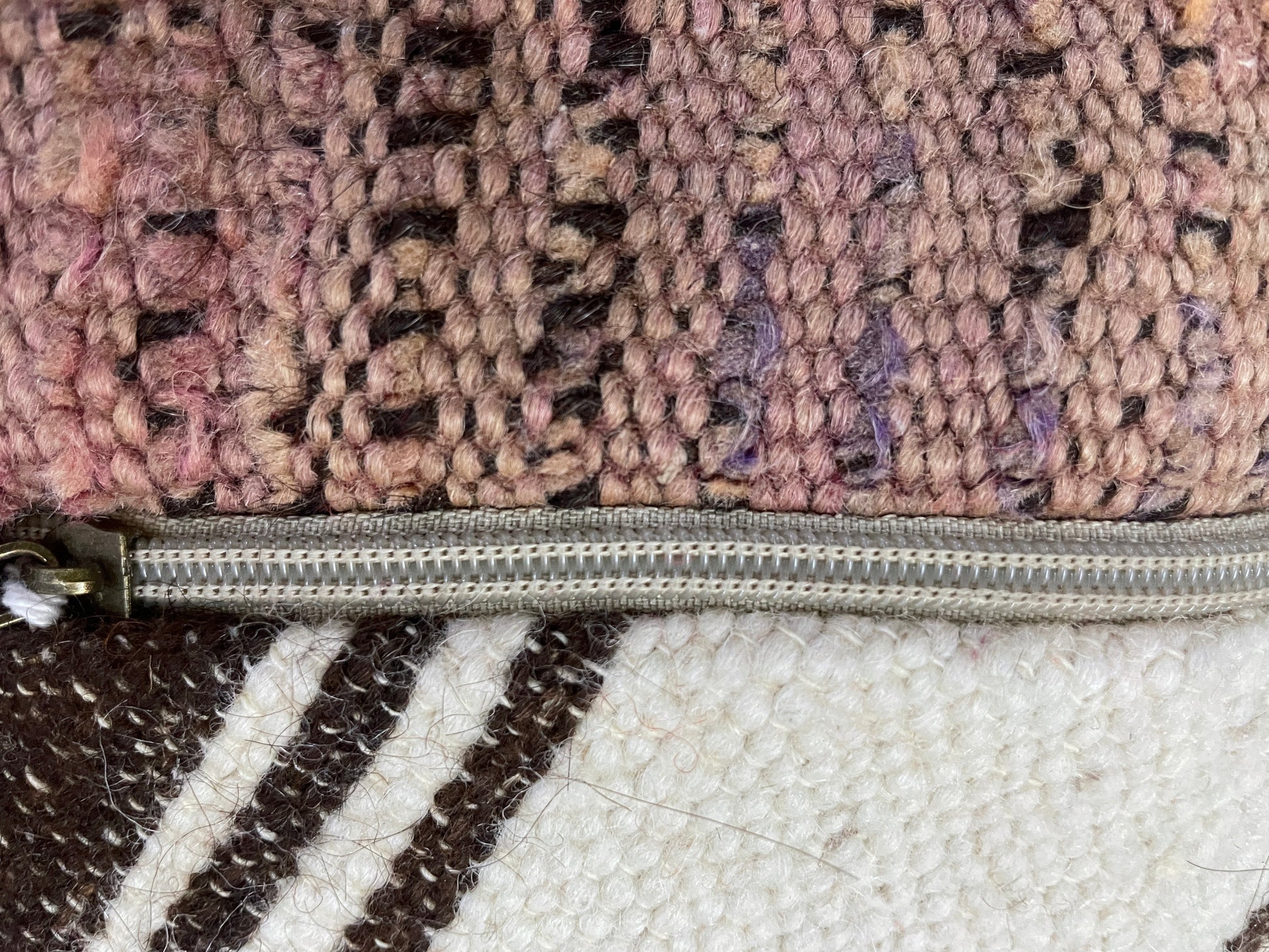 This round kilim pouf combines authentic Moroccan craftsmanship with functionality, serving as a perfect footrest, extra seating, or a decorative accent. Its timeless design and unique texture bring charm and character to any space, making it a versatile addition to your home. â¨