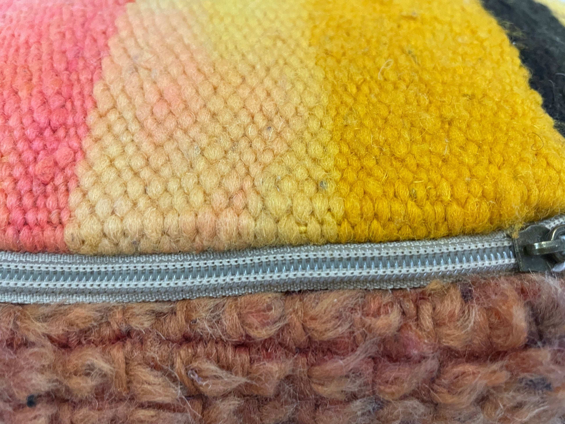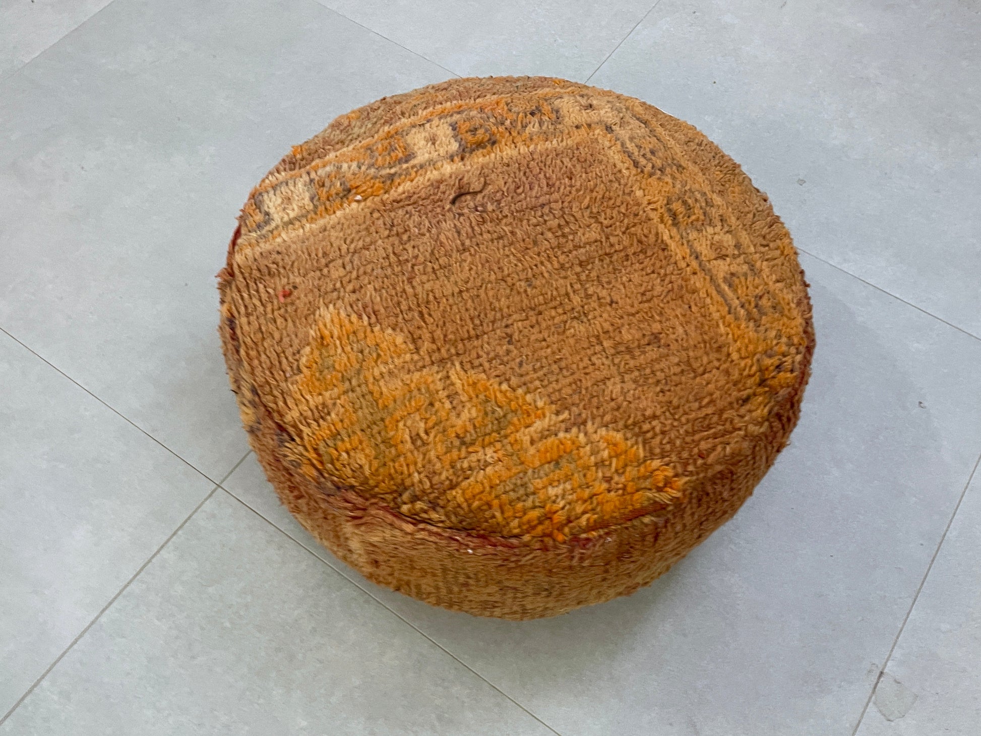 This round kilim pouf combines authentic Moroccan craftsmanship with functionality, serving as a perfect footrest, extra seating, or a decorative accent. Its timeless design and unique texture bring charm and character to any space, making it a versatile addition to your home. â¨