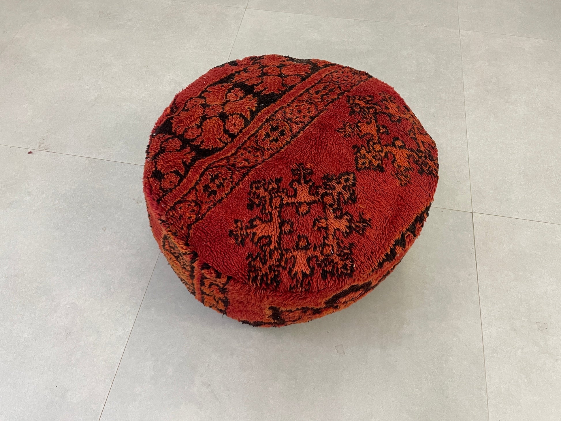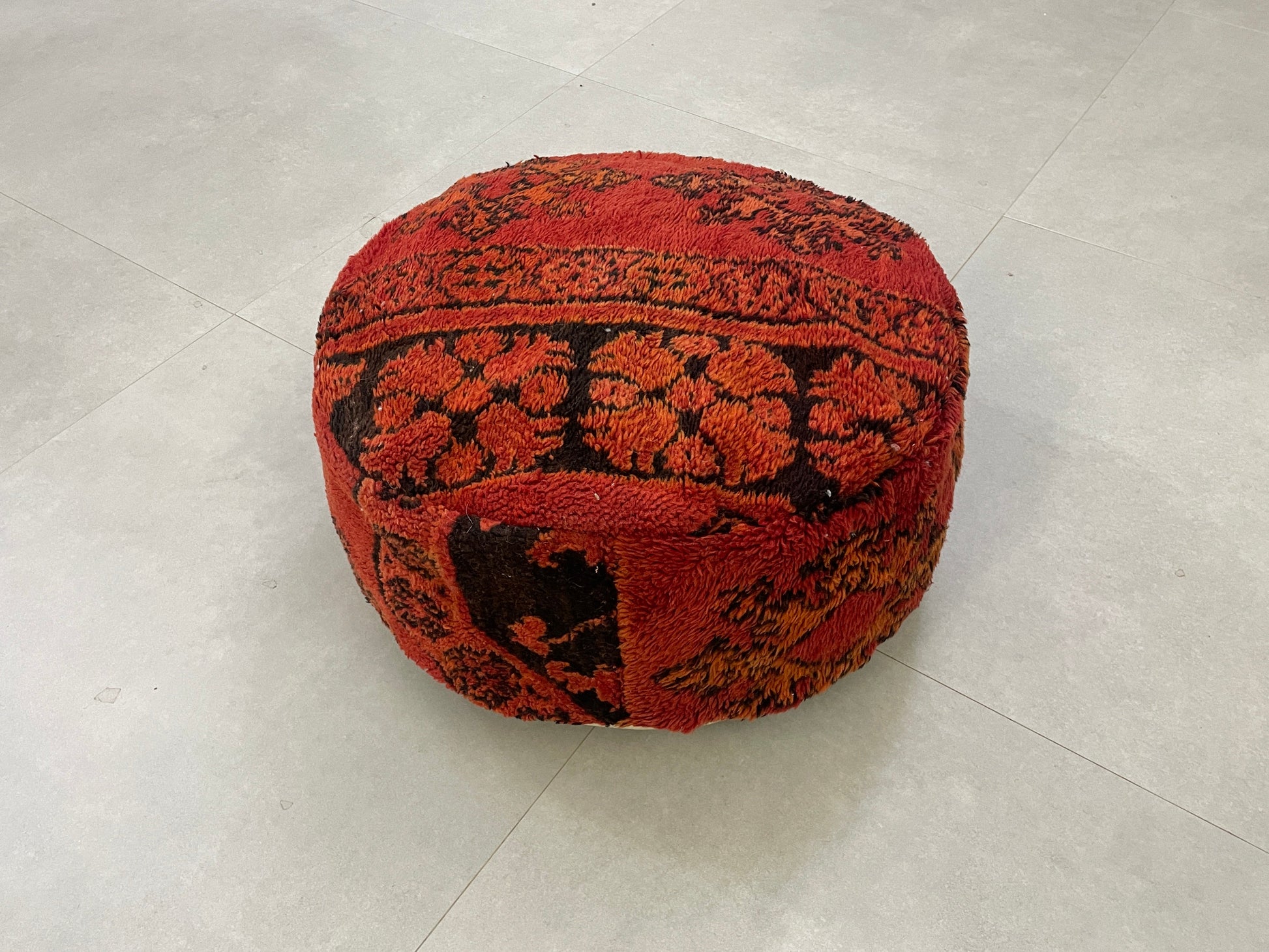 This round kilim pouf combines authentic Moroccan craftsmanship with functionality, serving as a perfect footrest, extra seating, or a decorative accent. Its timeless design and unique texture bring charm and character to any space, making it a versatile addition to your home. â¨