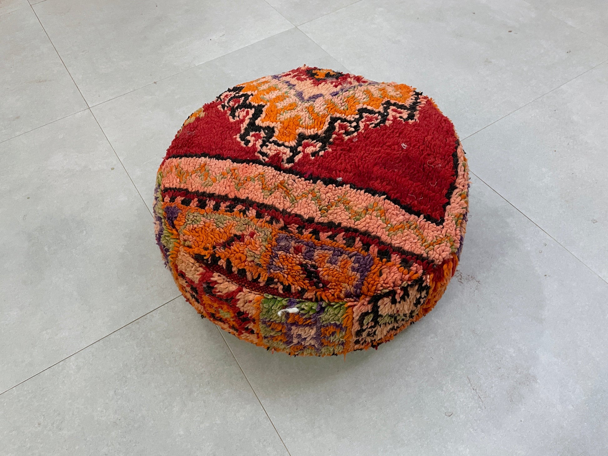 This round kilim pouf combines authentic Moroccan craftsmanship with functionality, serving as a perfect footrest, extra seating, or a decorative accent. Its timeless design and unique texture bring charm and character to any space, making it a versatile addition to your home. â¨