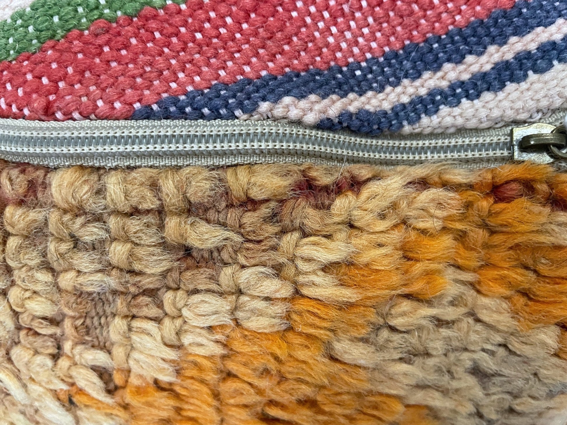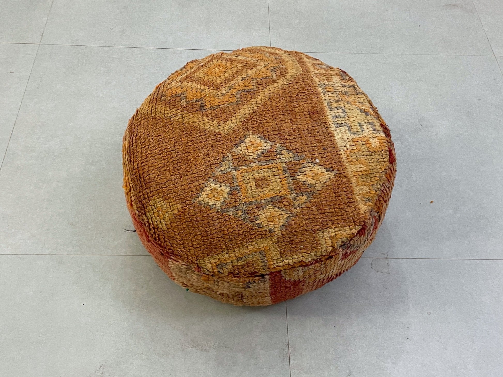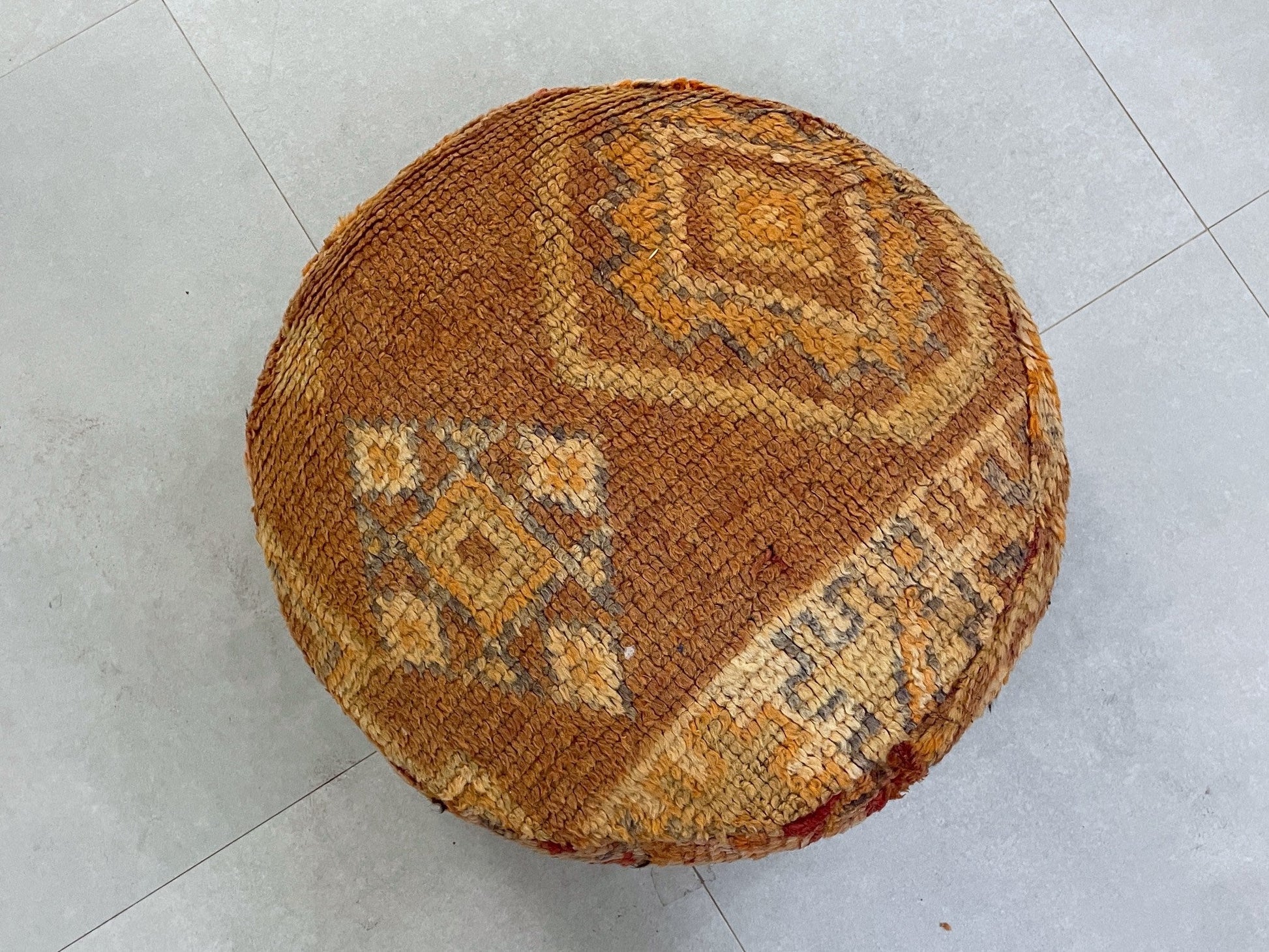 This round kilim pouf combines authentic Moroccan craftsmanship with functionality, serving as a perfect footrest, extra seating, or a decorative accent. Its timeless design and unique texture bring charm and character to any space, making it a versatile addition to your home. â¨