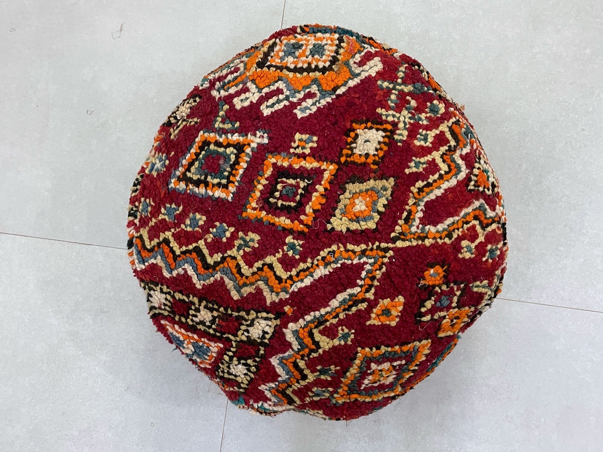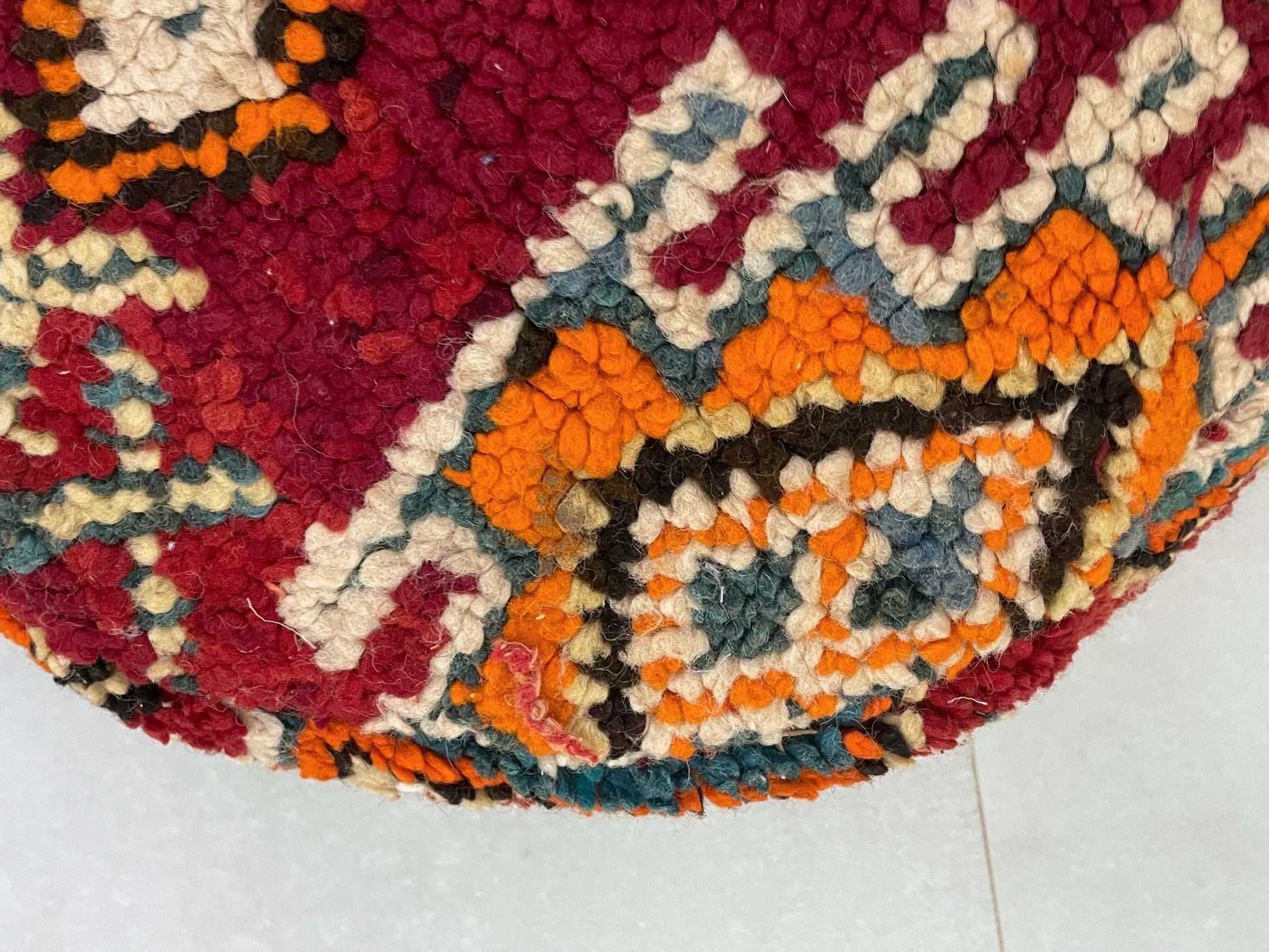 This round kilim pouf combines authentic Moroccan craftsmanship with functionality, serving as a perfect footrest, extra seating, or a decorative accent. Its timeless design and unique texture bring charm and character to any space, making it a versatile addition to your home. â¨