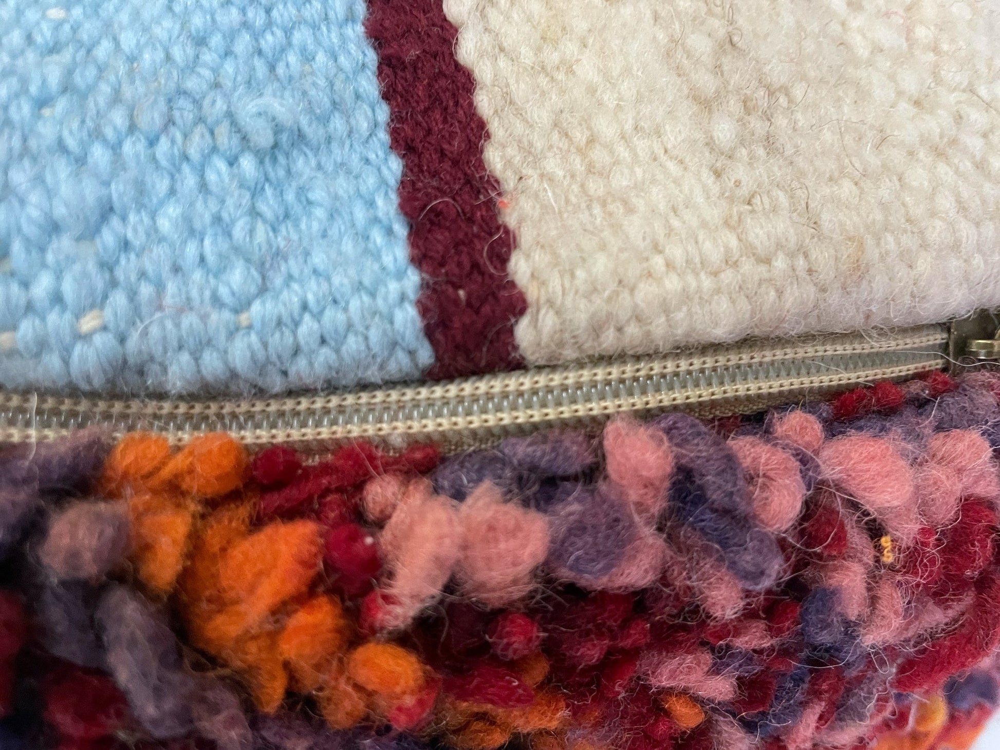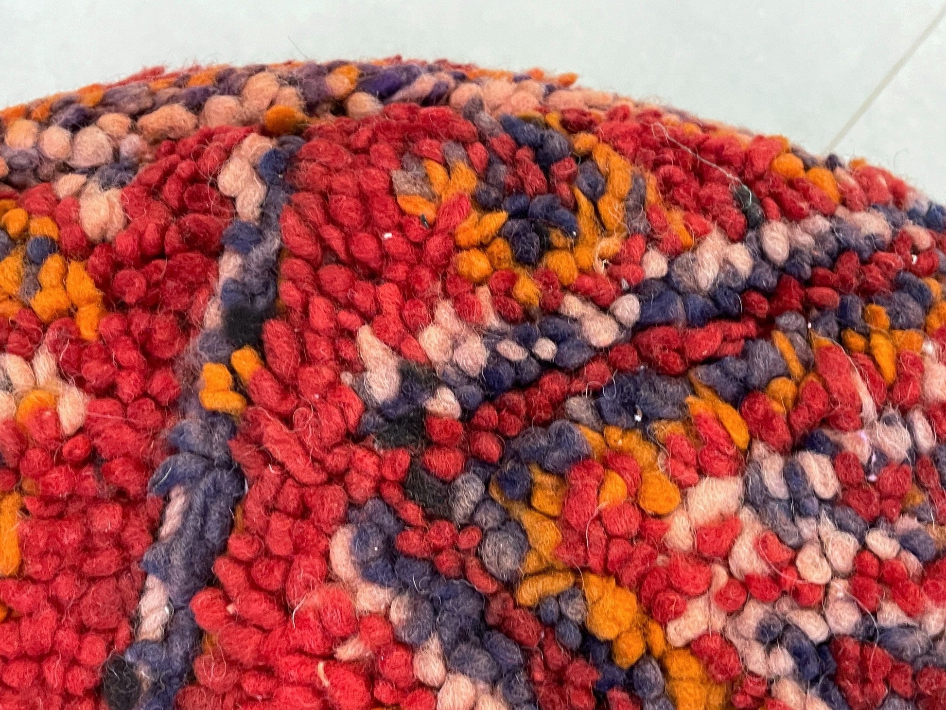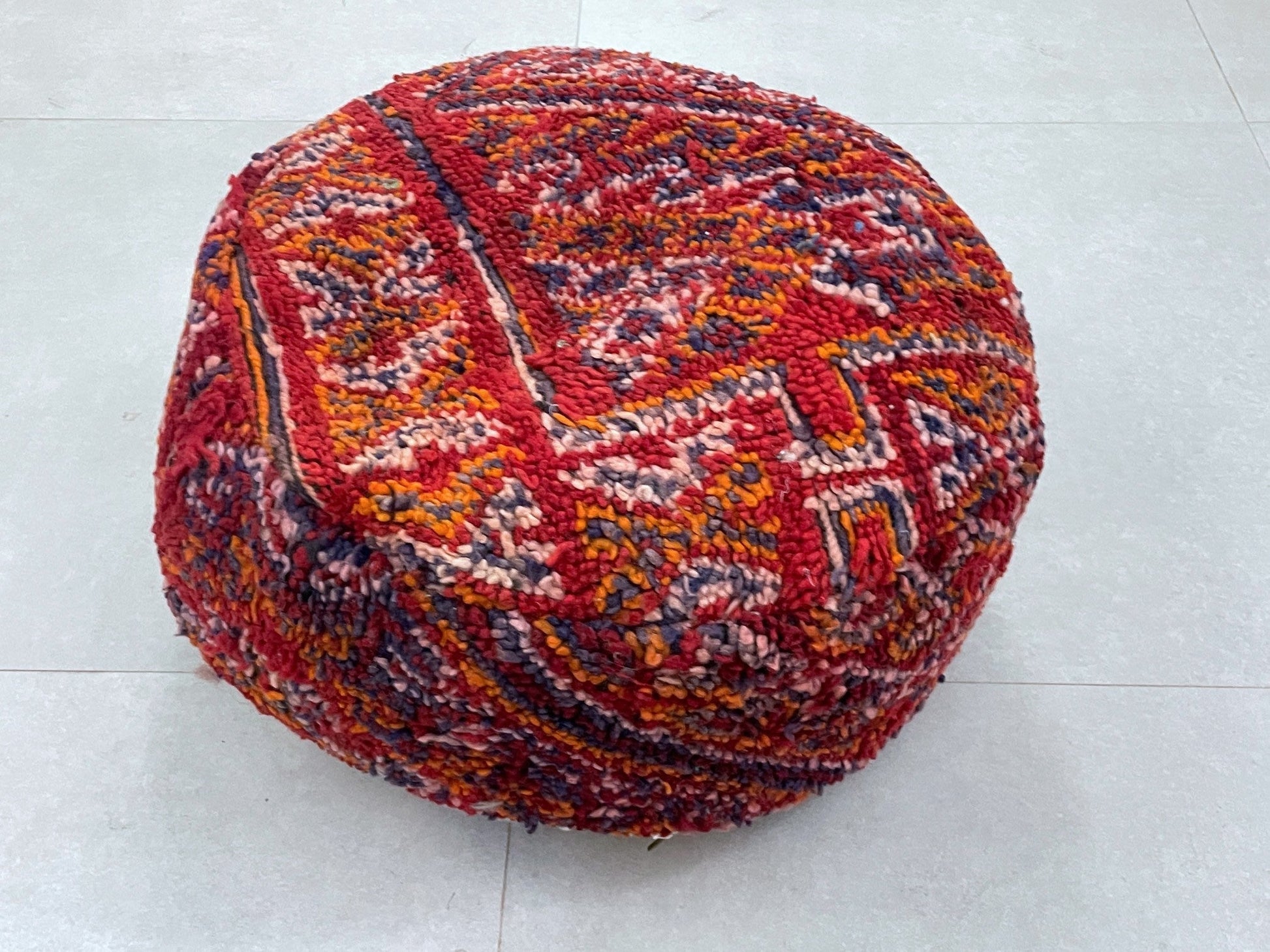 This round kilim pouf combines authentic Moroccan craftsmanship with functionality, serving as a perfect footrest, extra seating, or a decorative accent. Its timeless design and unique texture bring charm and character to any space, making it a versatile addition to your home. â¨