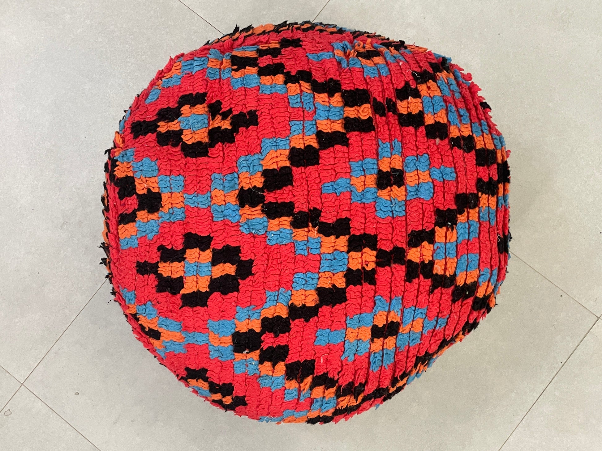 This round kilim pouf combines authentic Moroccan craftsmanship with functionality, serving as a perfect footrest, extra seating, or a decorative accent. Its timeless design and unique texture bring charm and character to any space, making it a versatile addition to your home. â¨