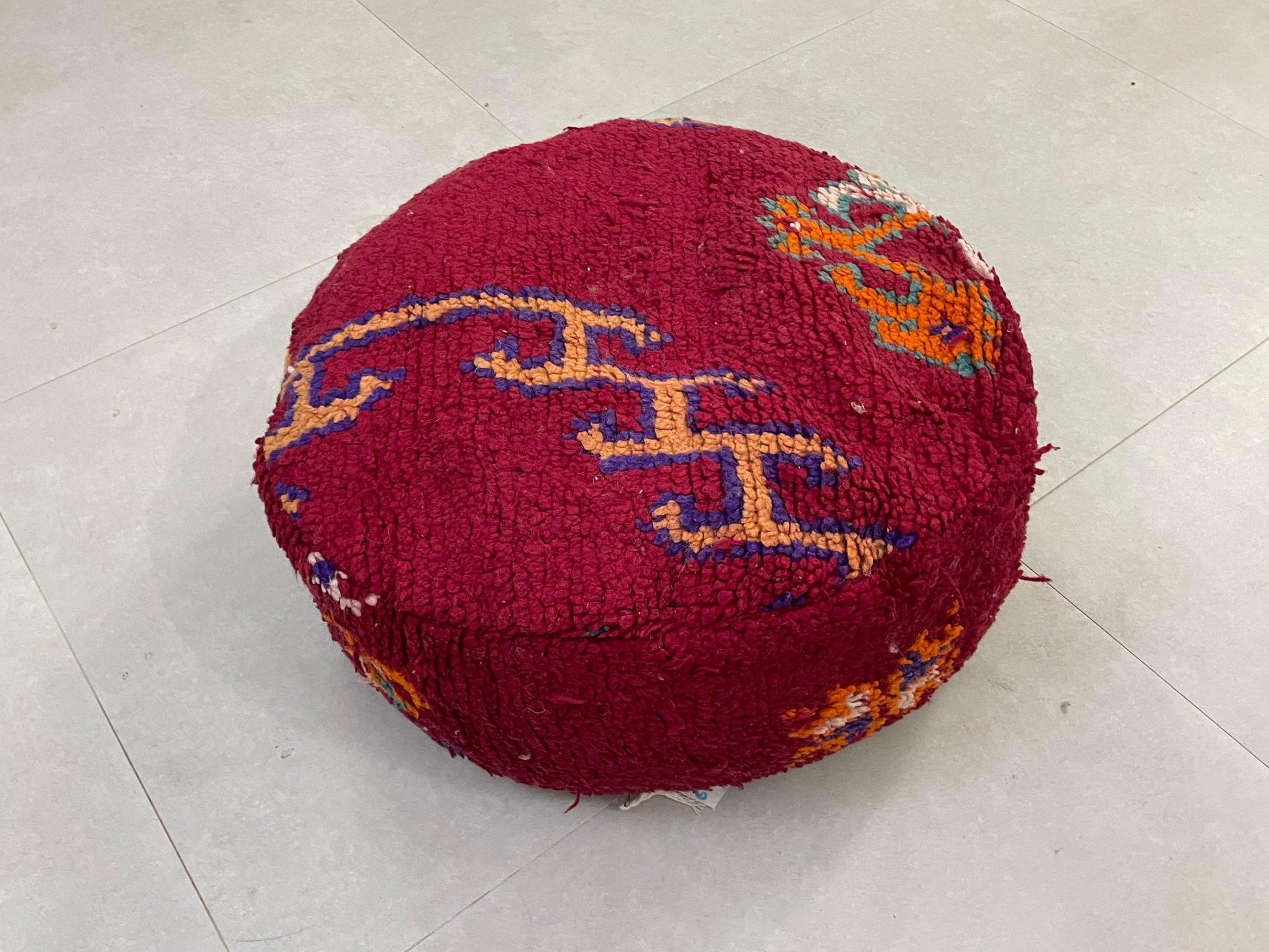 This round kilim pouf combines authentic Moroccan craftsmanship with functionality, serving as a perfect footrest, extra seating, or a decorative accent. Its timeless design and unique texture bring charm and character to any space, making it a versatile addition to your home. â¨