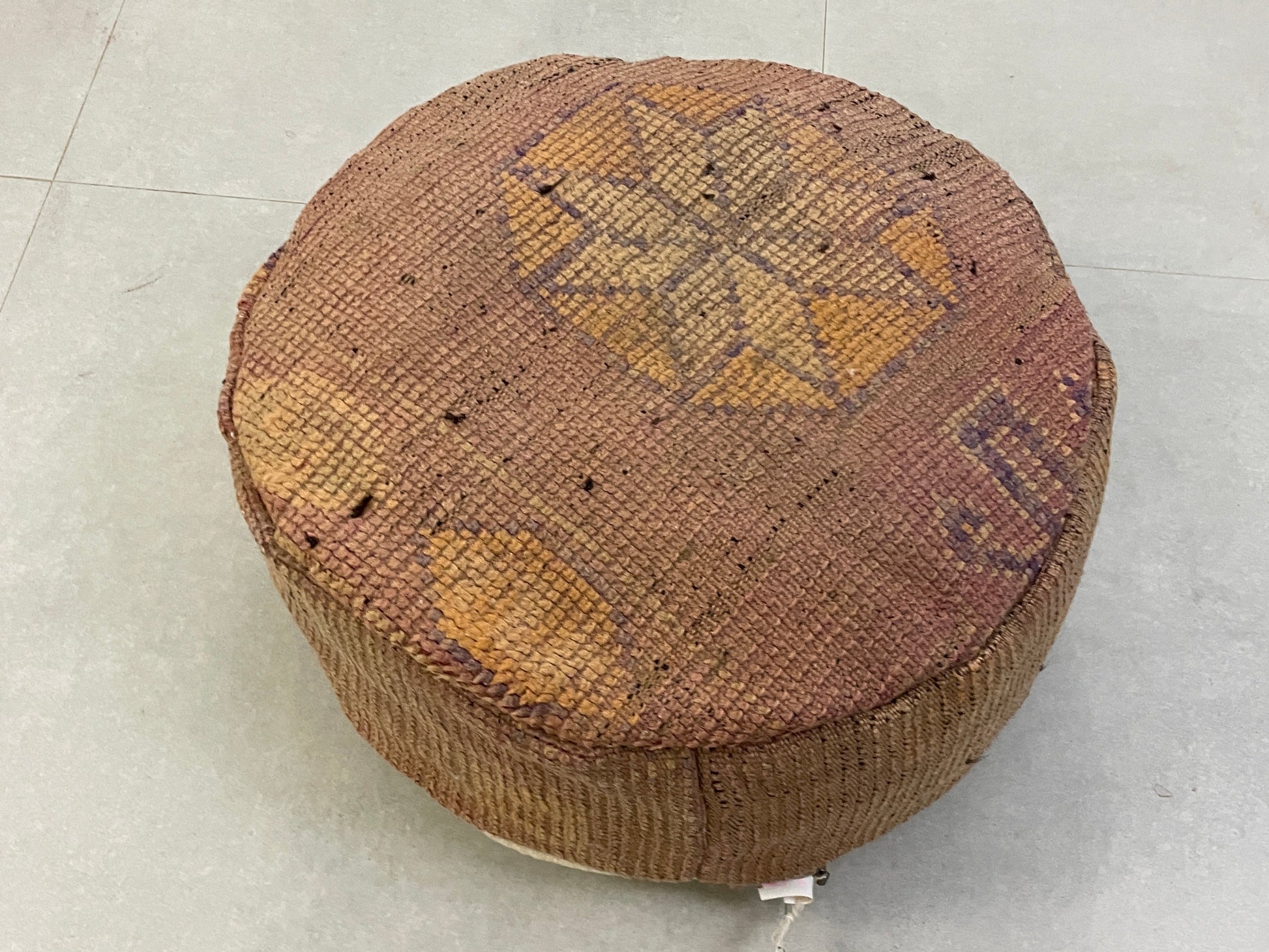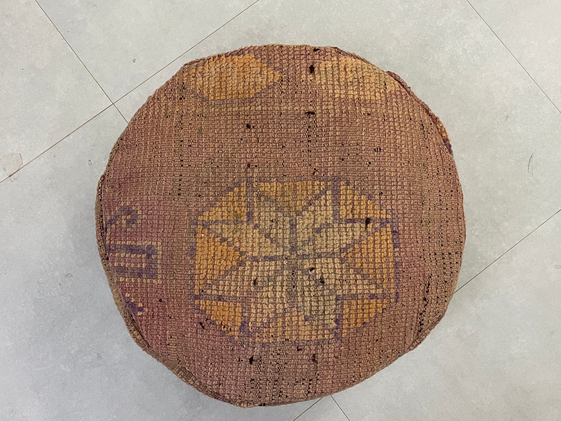 This round kilim pouf combines authentic Moroccan craftsmanship with functionality, serving as a perfect footrest, extra seating, or a decorative accent. Its timeless design and unique texture bring charm and character to any space, making it a versatile addition to your home. āØ