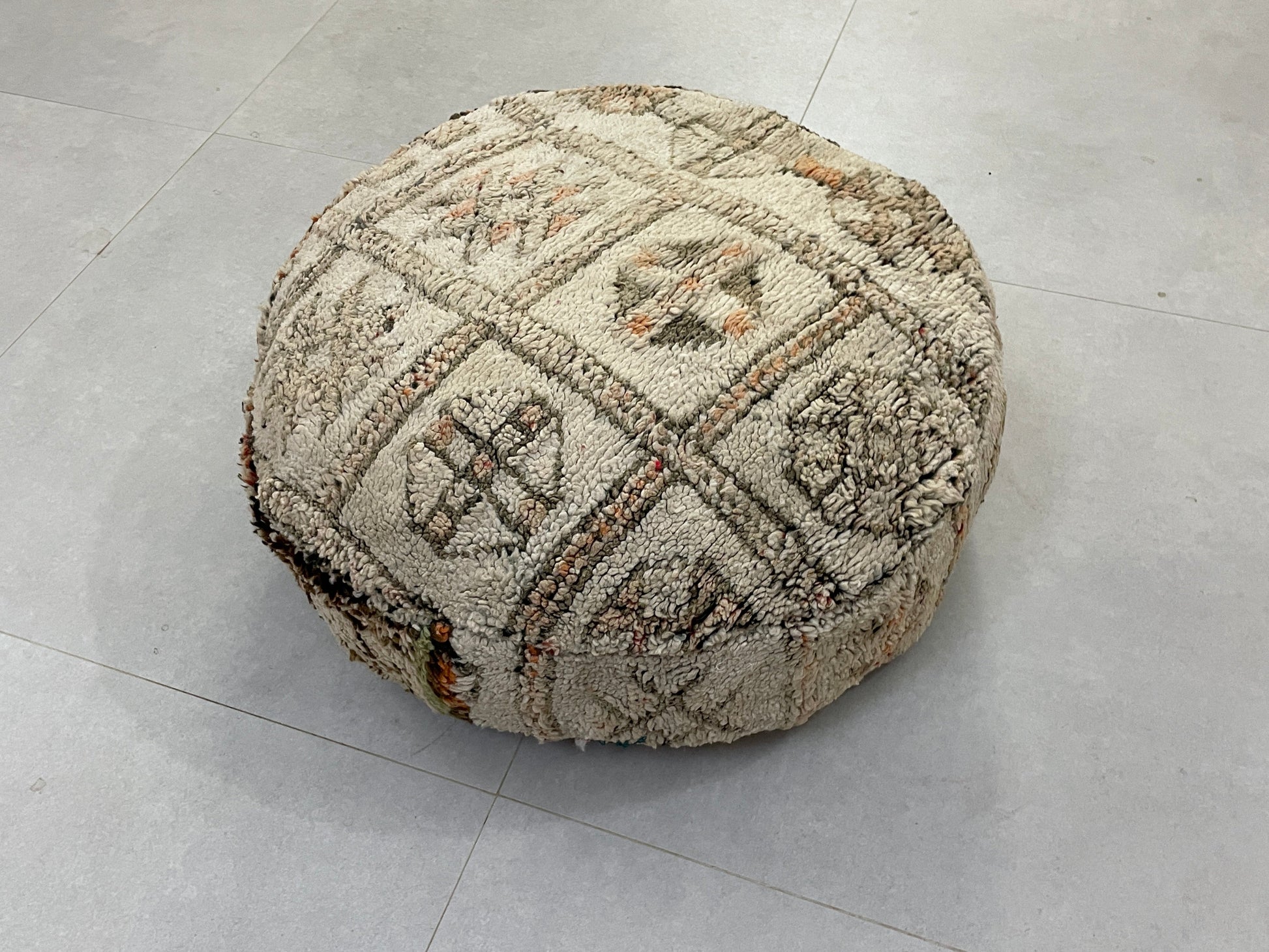 This round kilim pouf combines authentic Moroccan craftsmanship with functionality, serving as a perfect footrest, extra seating, or a decorative accent. Its timeless design and unique texture bring charm and character to any space, making it a versatile addition to your home. â¨