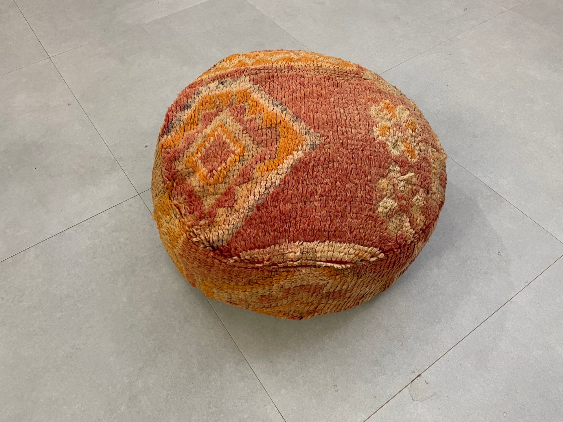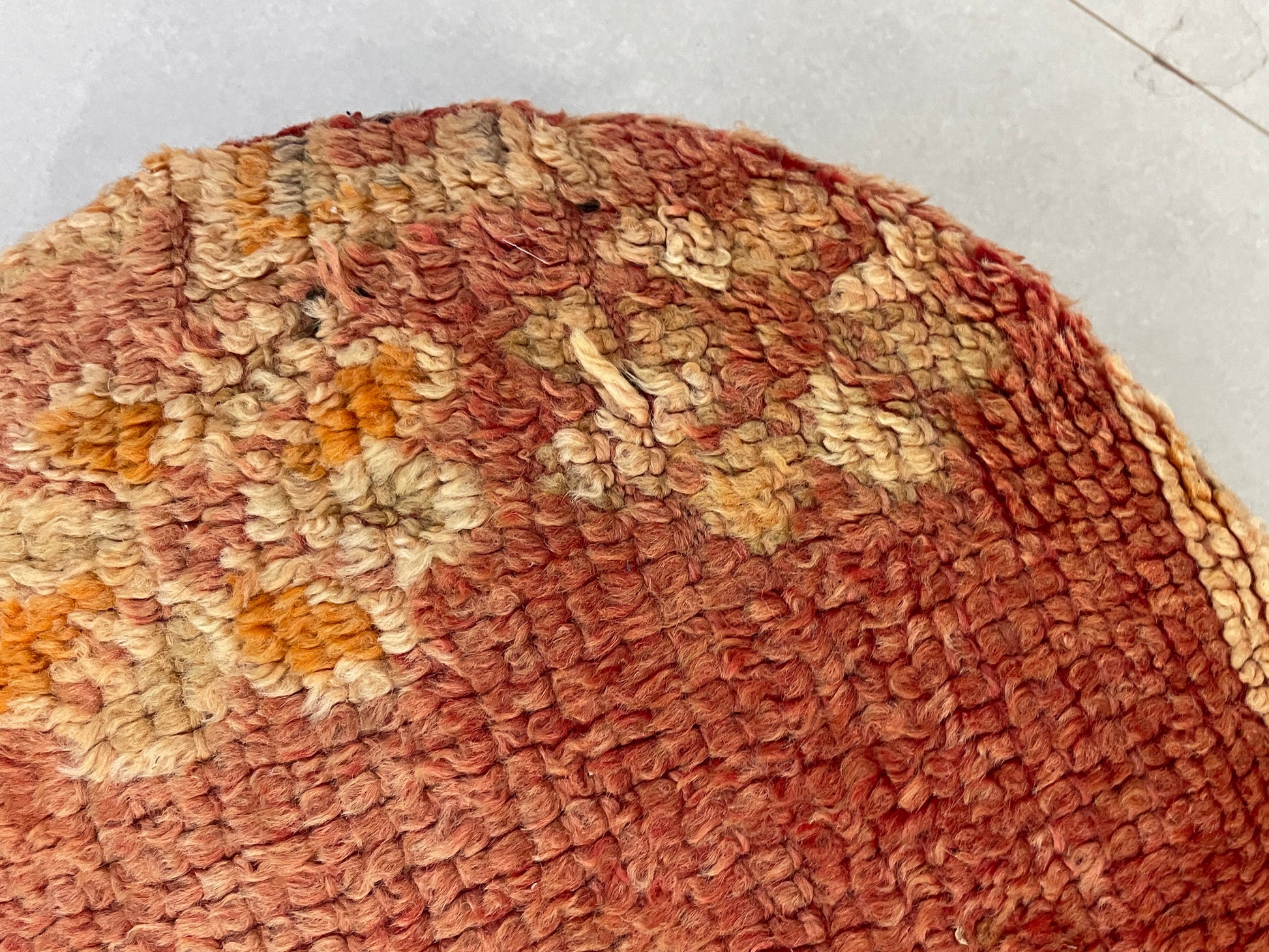 This round kilim pouf combines authentic Moroccan craftsmanship with functionality, serving as a perfect footrest, extra seating, or a decorative accent. Its timeless design and unique texture bring charm and character to any space, making it a versatile addition to your home. â¨