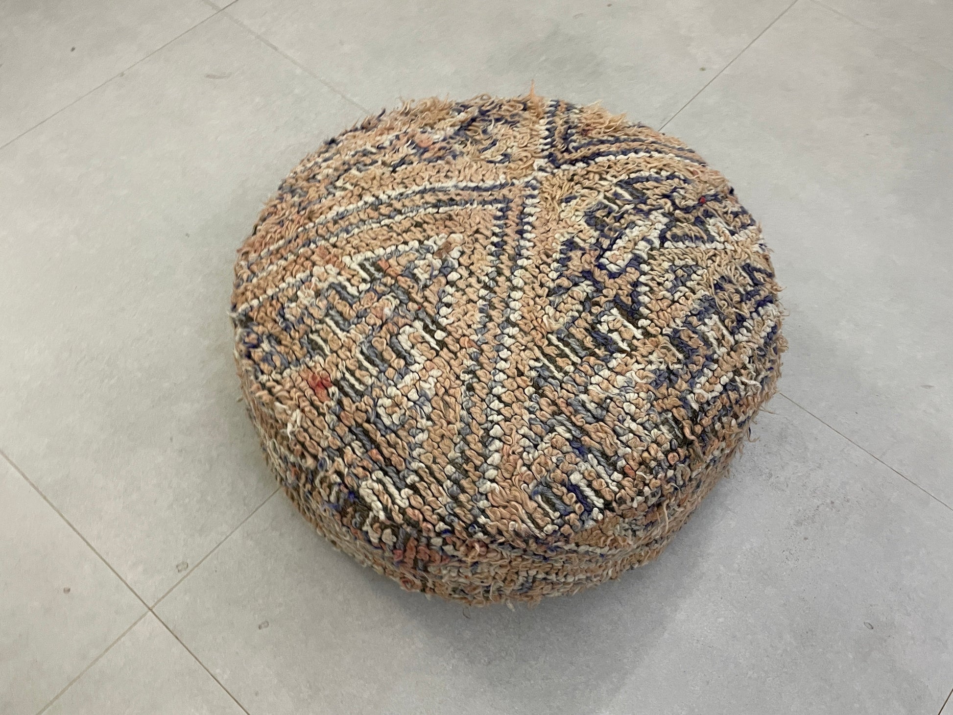 This round kilim pouf combines authentic Moroccan craftsmanship with functionality, serving as a perfect footrest, extra seating, or a decorative accent. Its timeless design and unique texture bring charm and character to any space, making it a versatile addition to your home. āØ